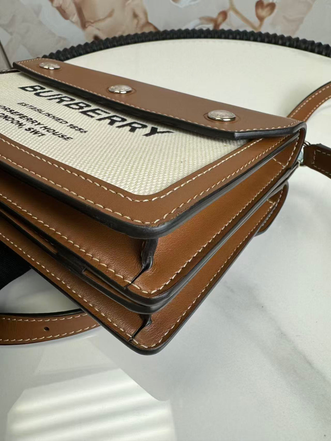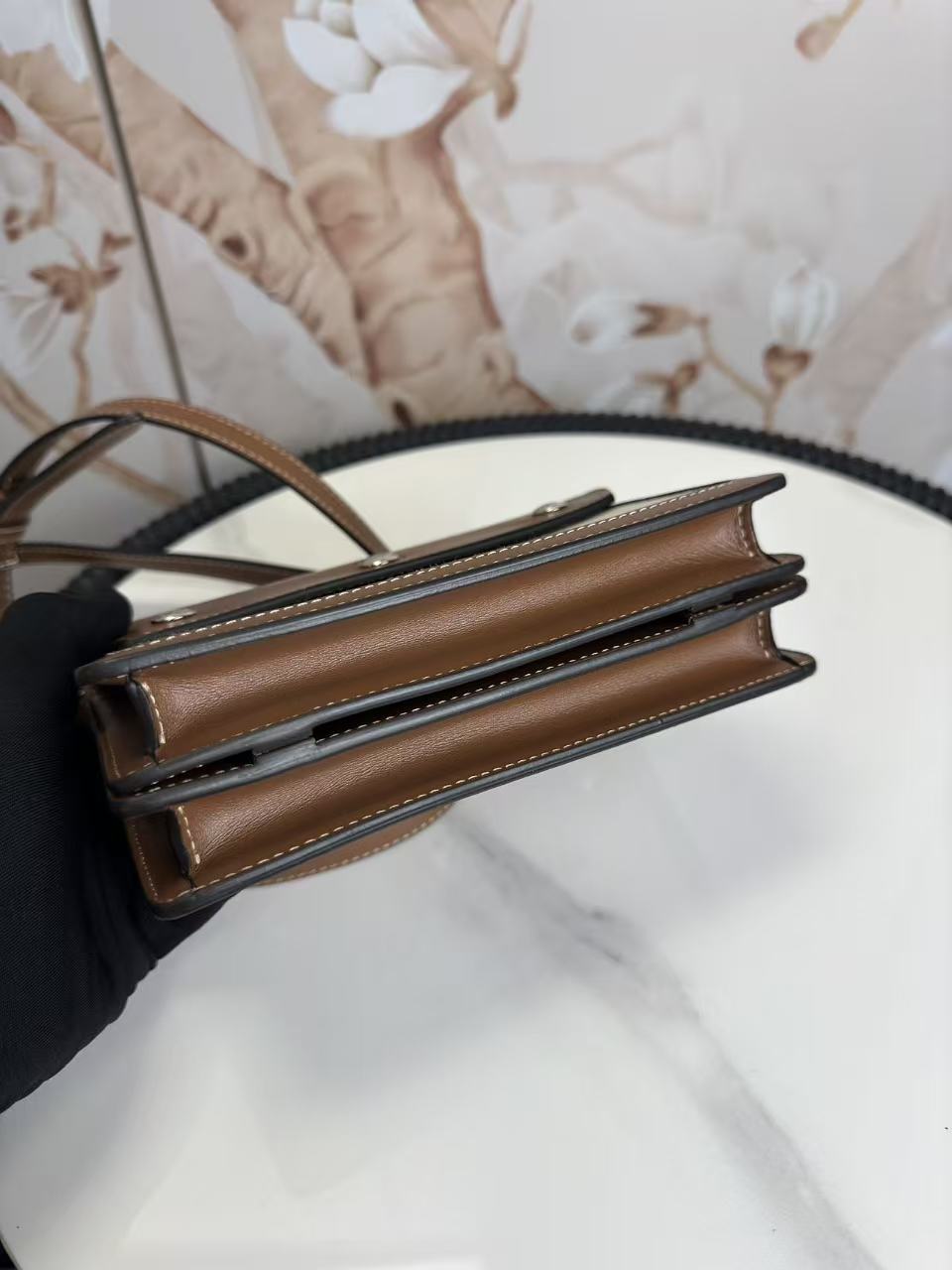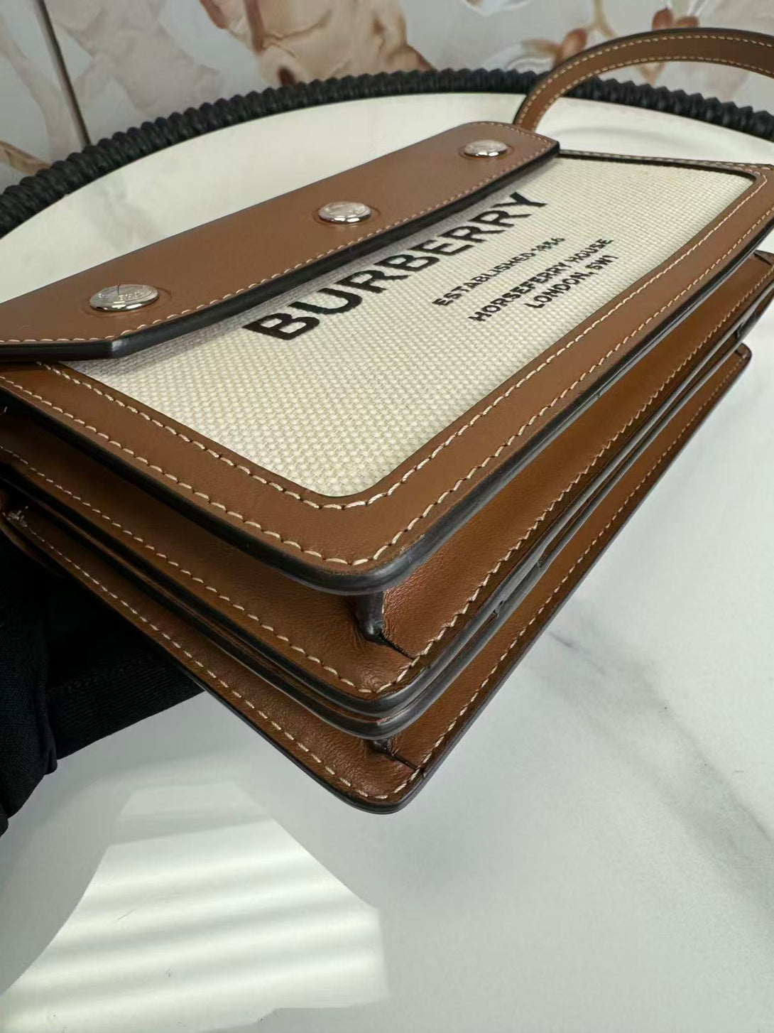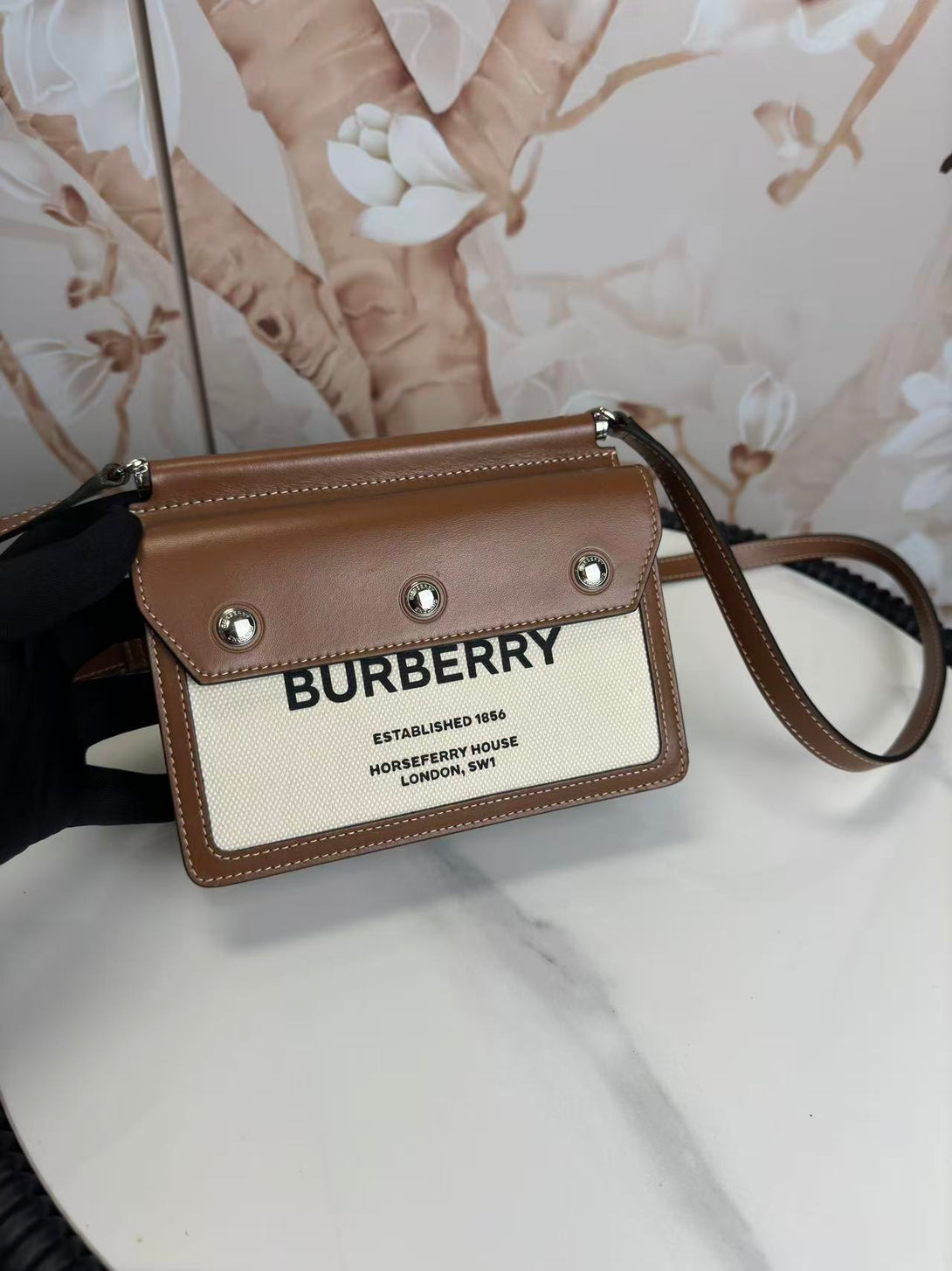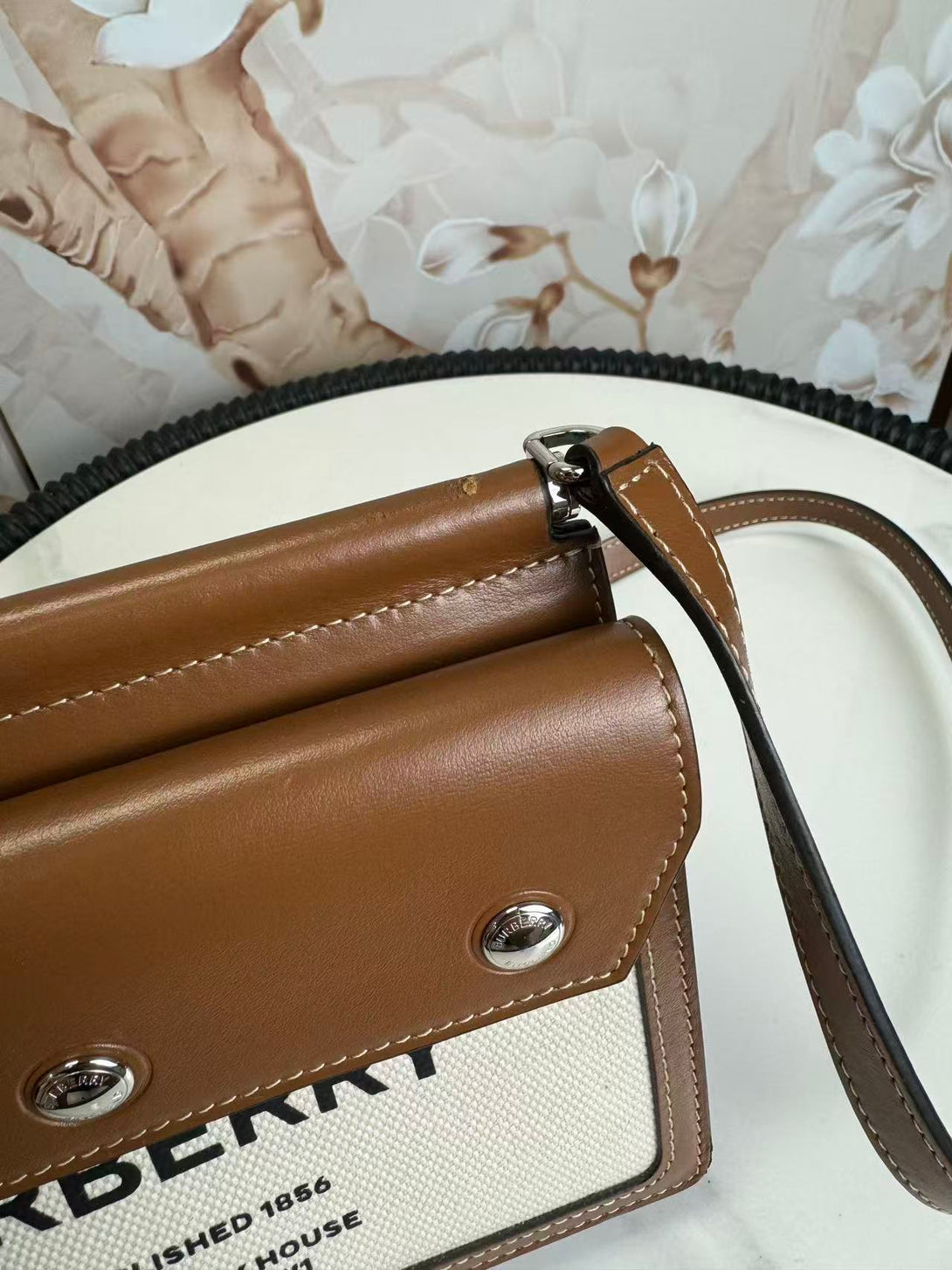 Burberry Smooth Calfskin Canvas Horseferry Print Mini Title Bag with Pocket Natural Malt Brown