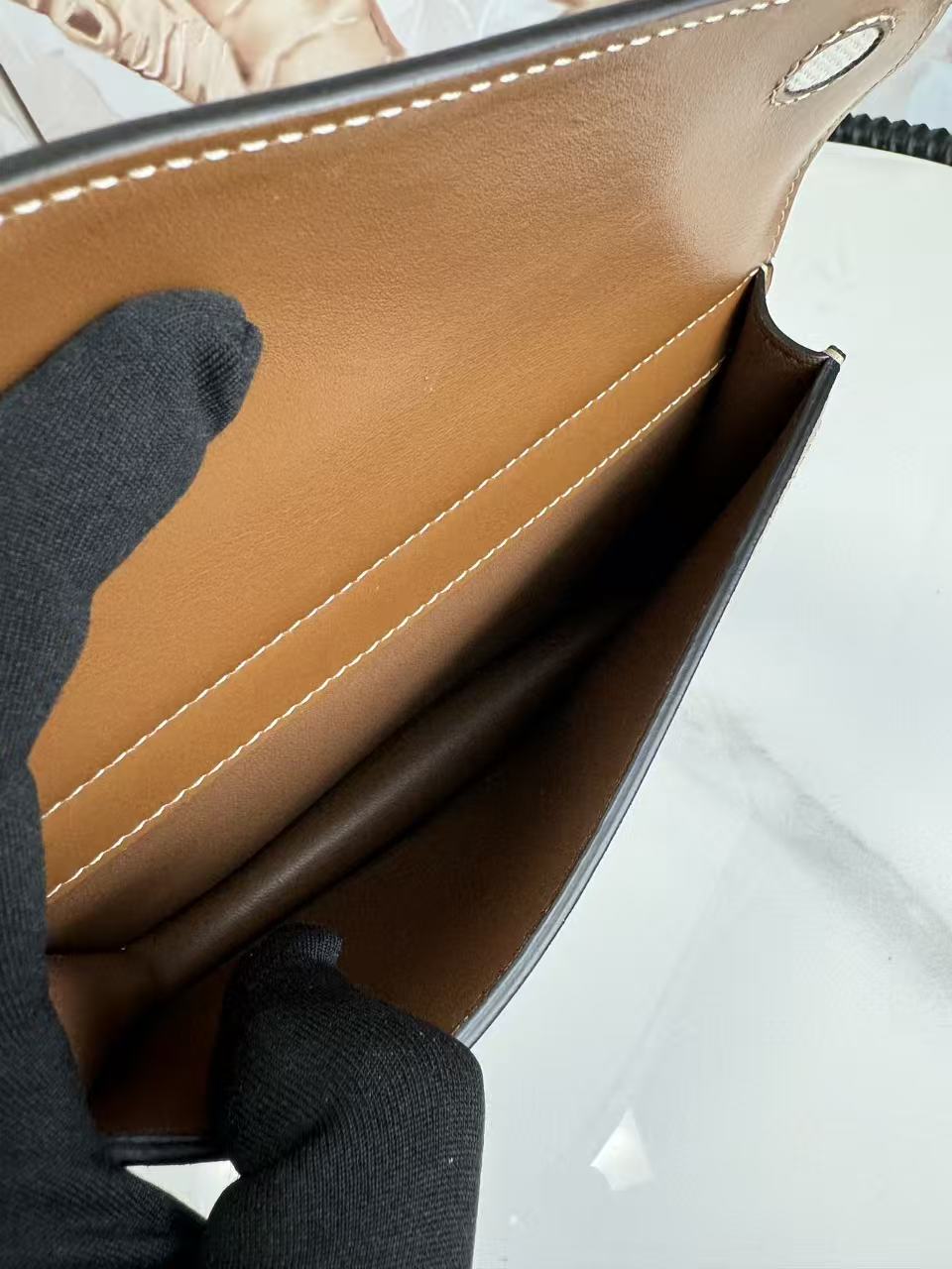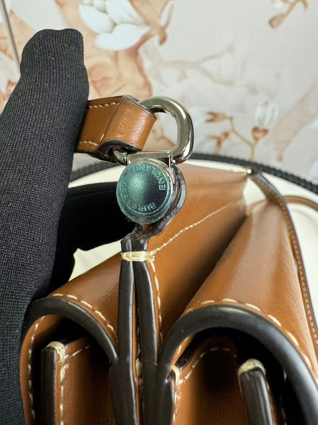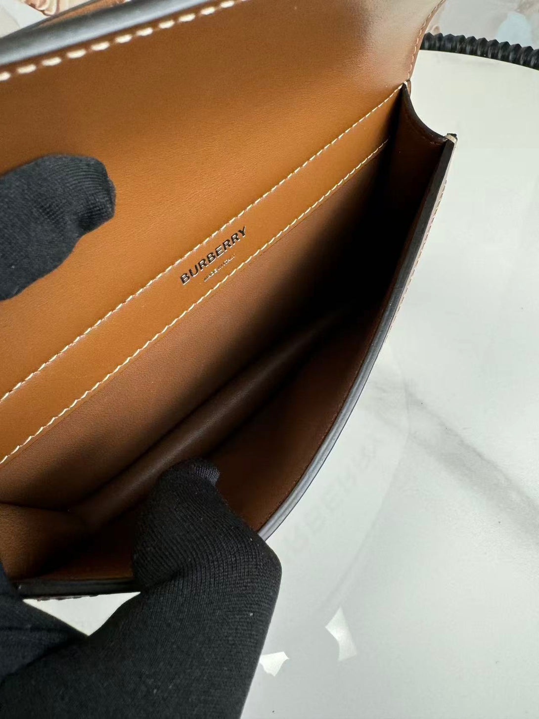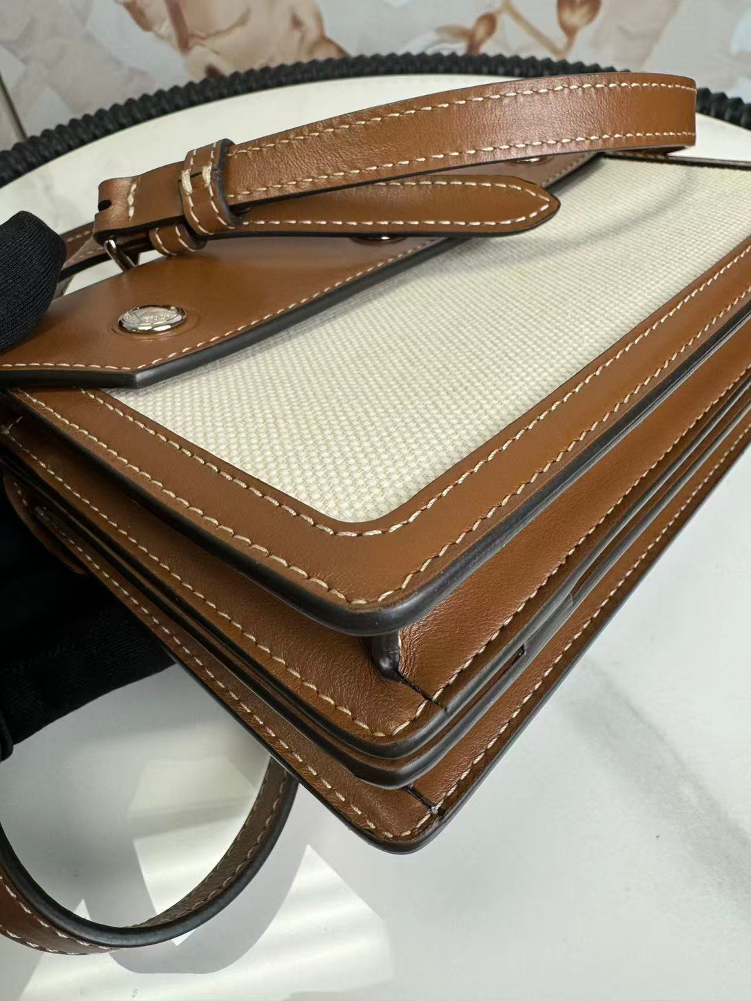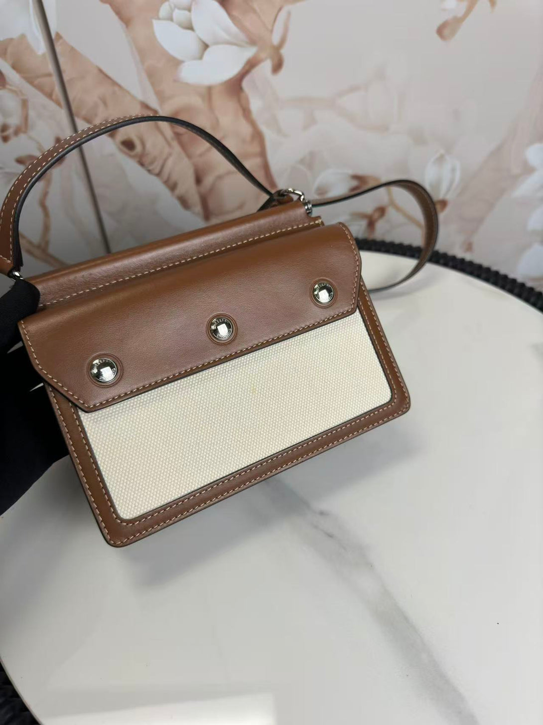 Burberry Smooth Calfskin Canvas Horseferry Print Mini Title Bag with Pocket Natural Malt Brown