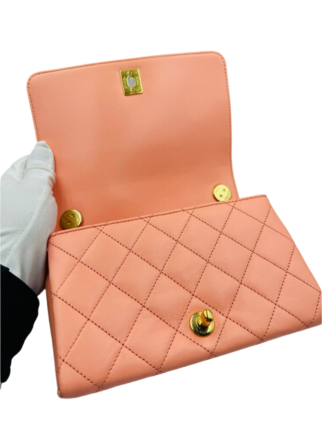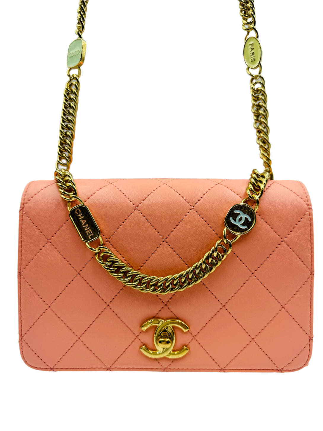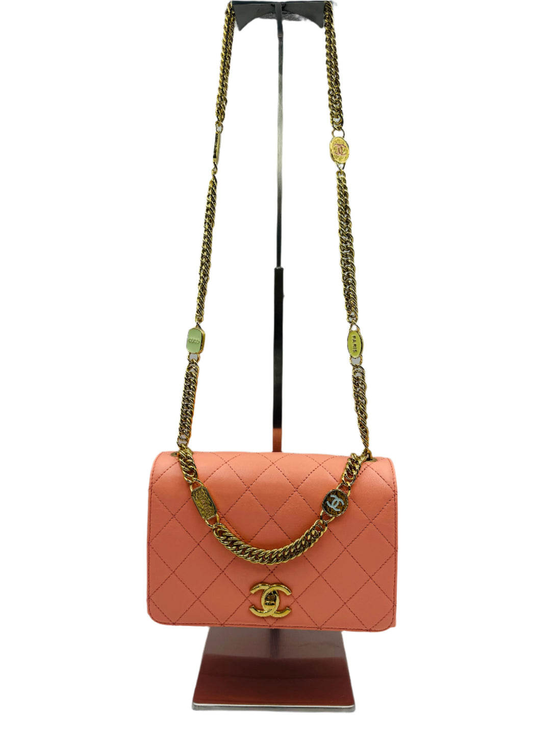 Chanel 23C Charm Chain Flap Bag Light Orange Stiff Lambskin