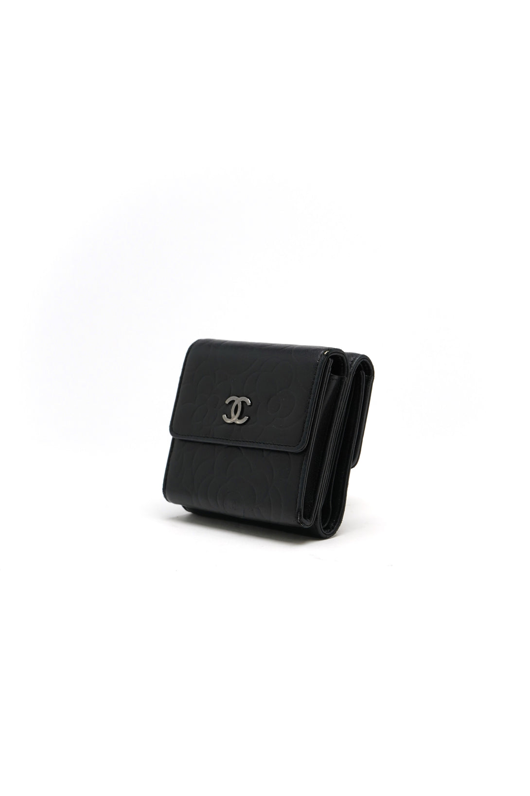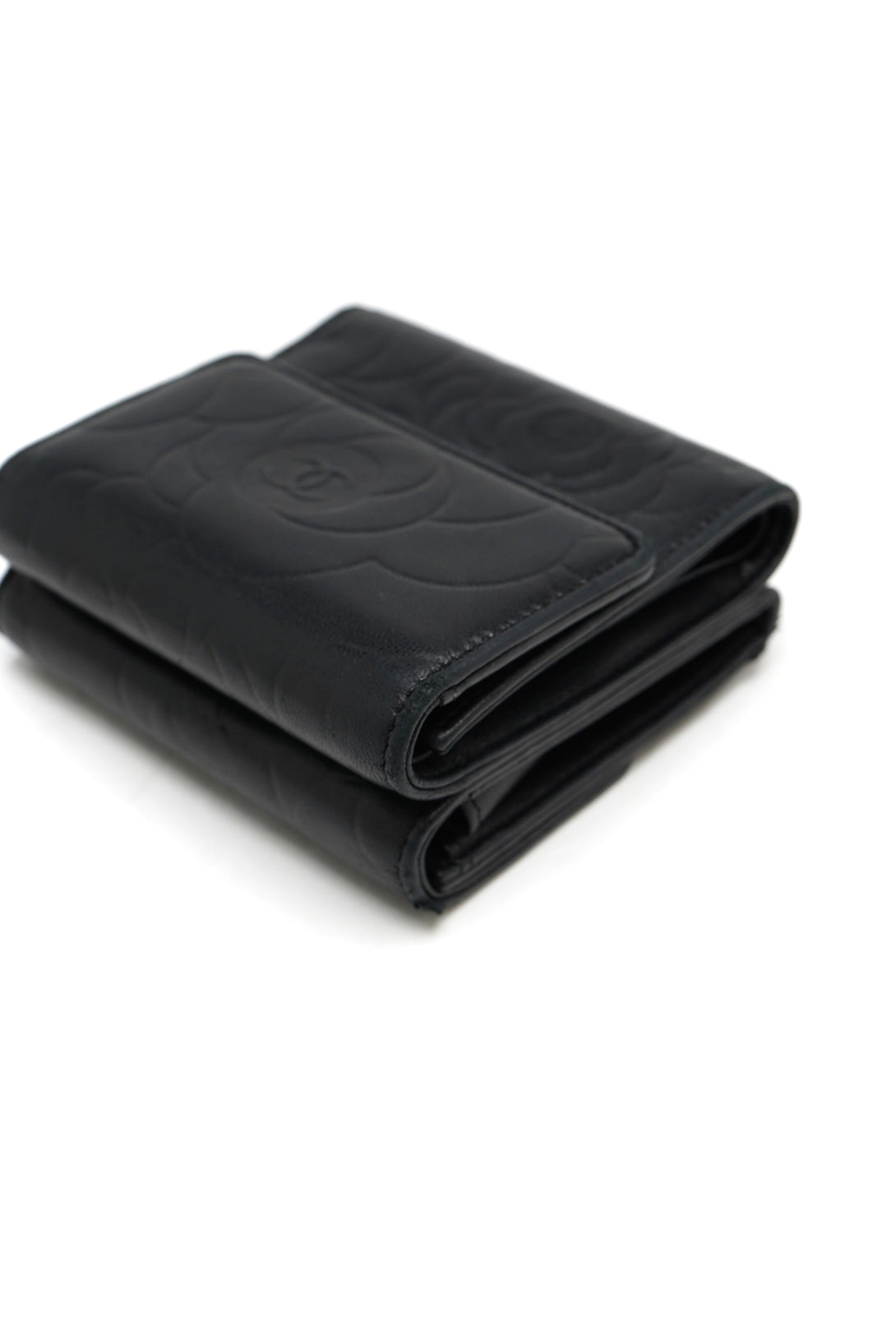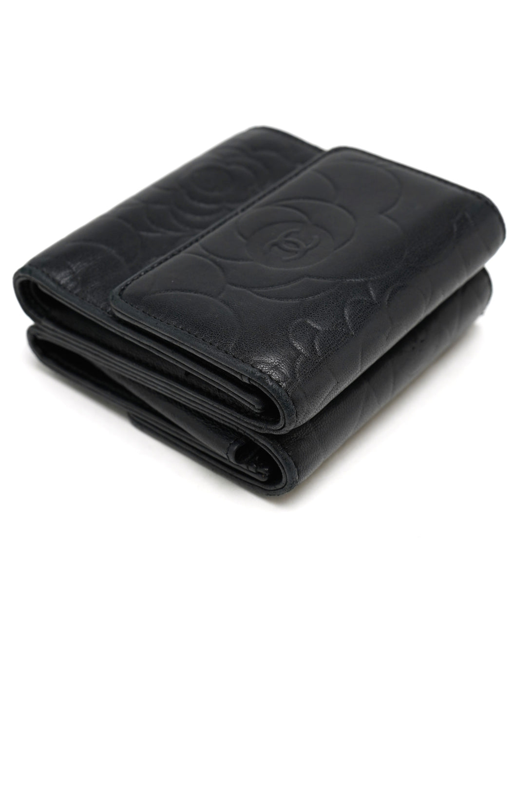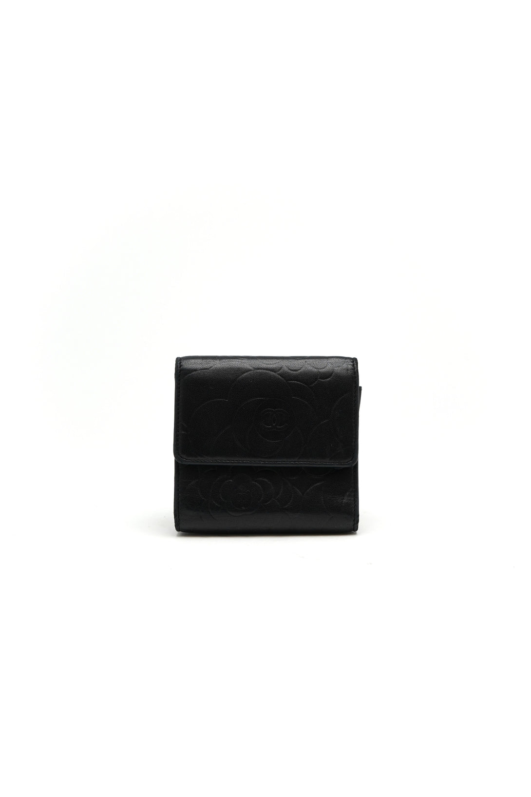 Chanel Lambskin Double Embossed Camellia French Wallet Black