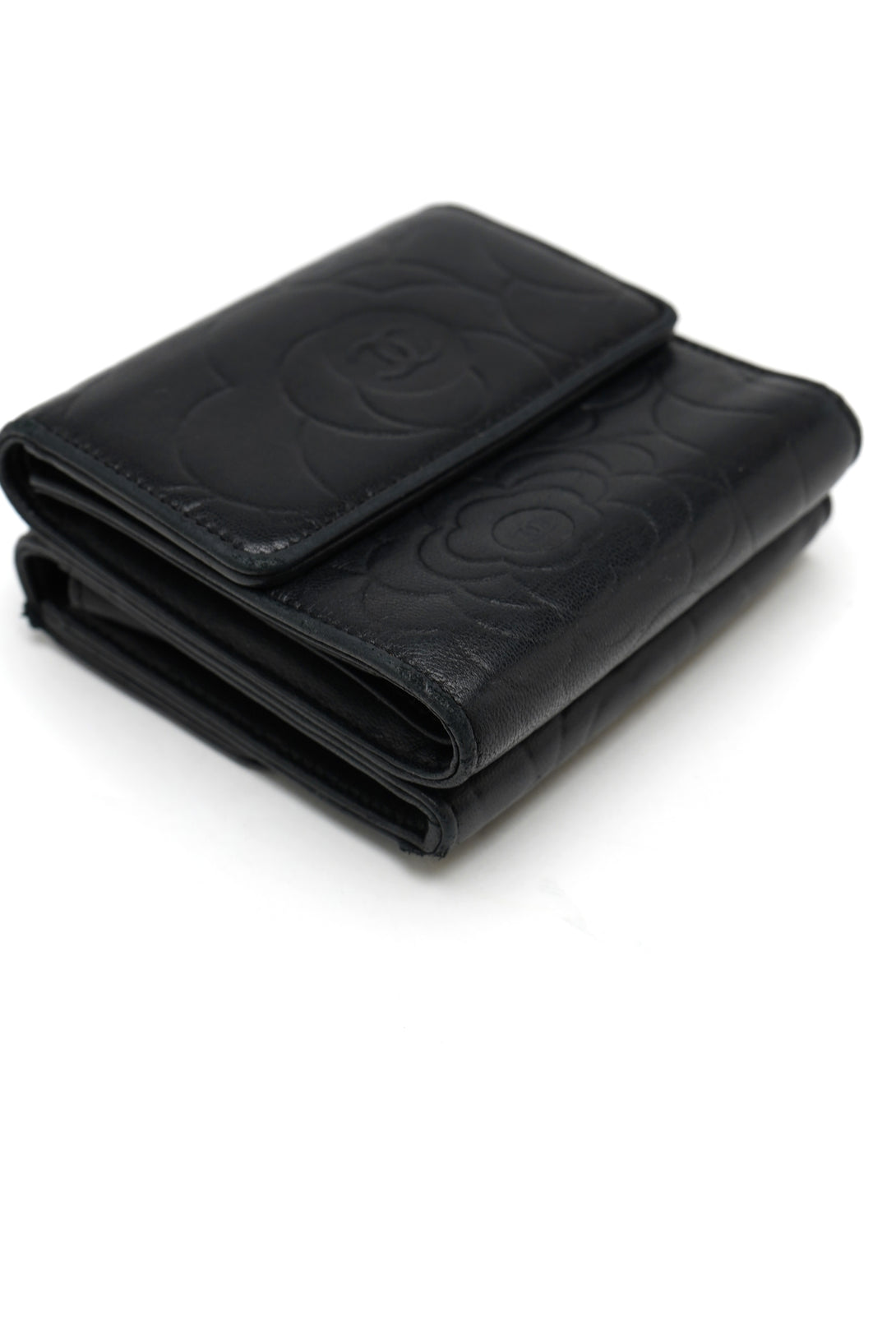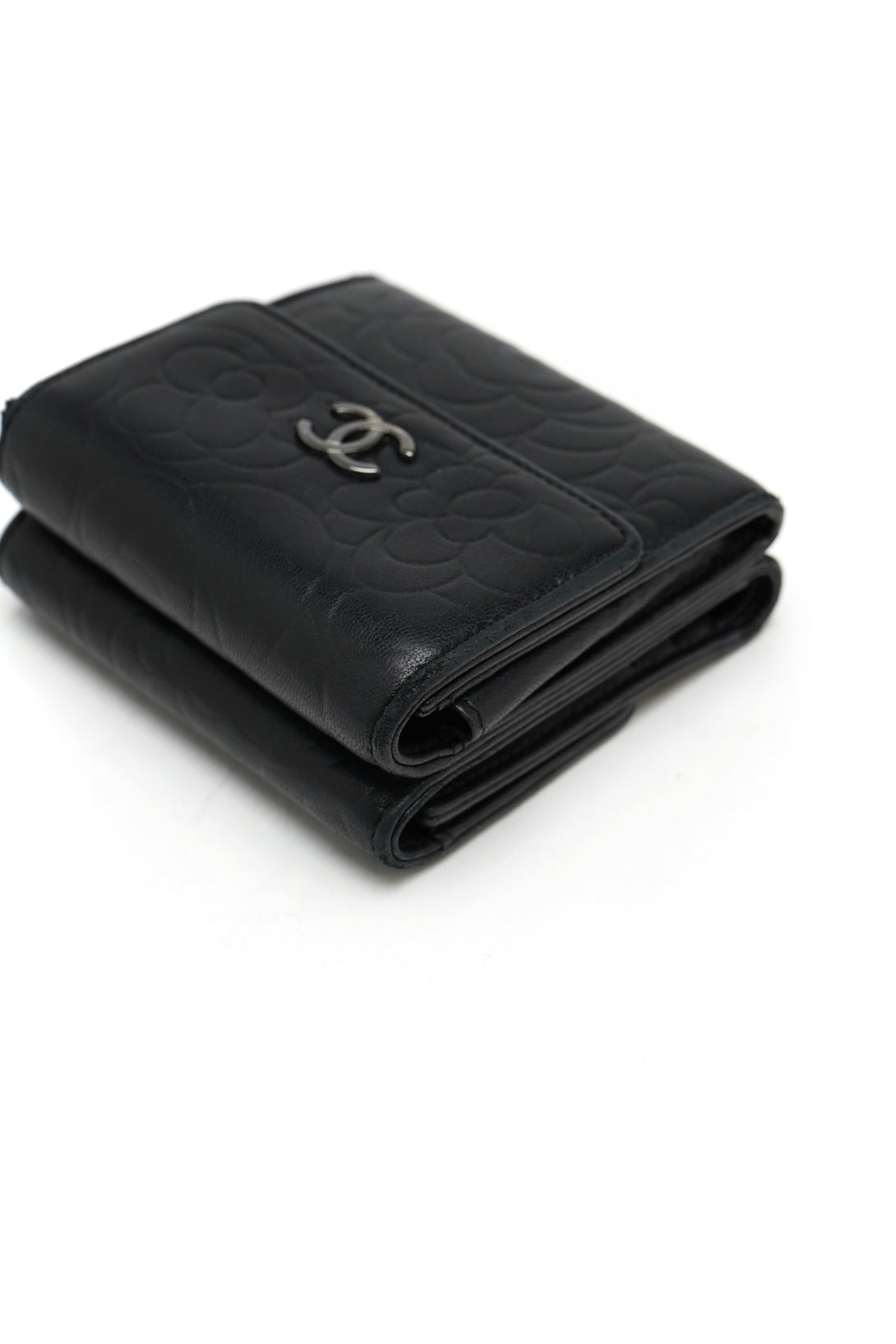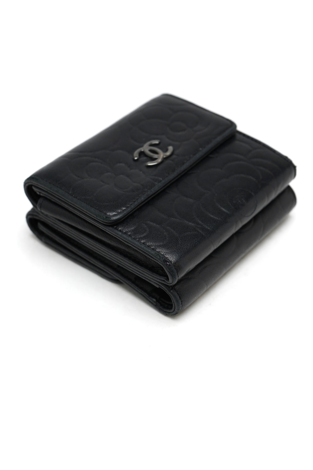 Chanel Lambskin Double Embossed Camellia French Wallet Black
