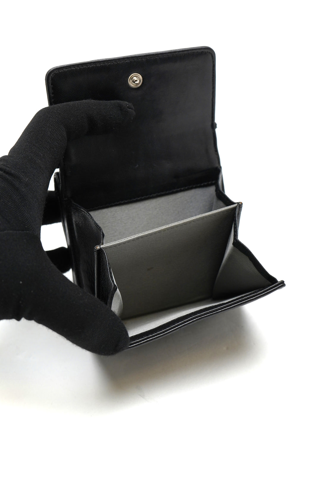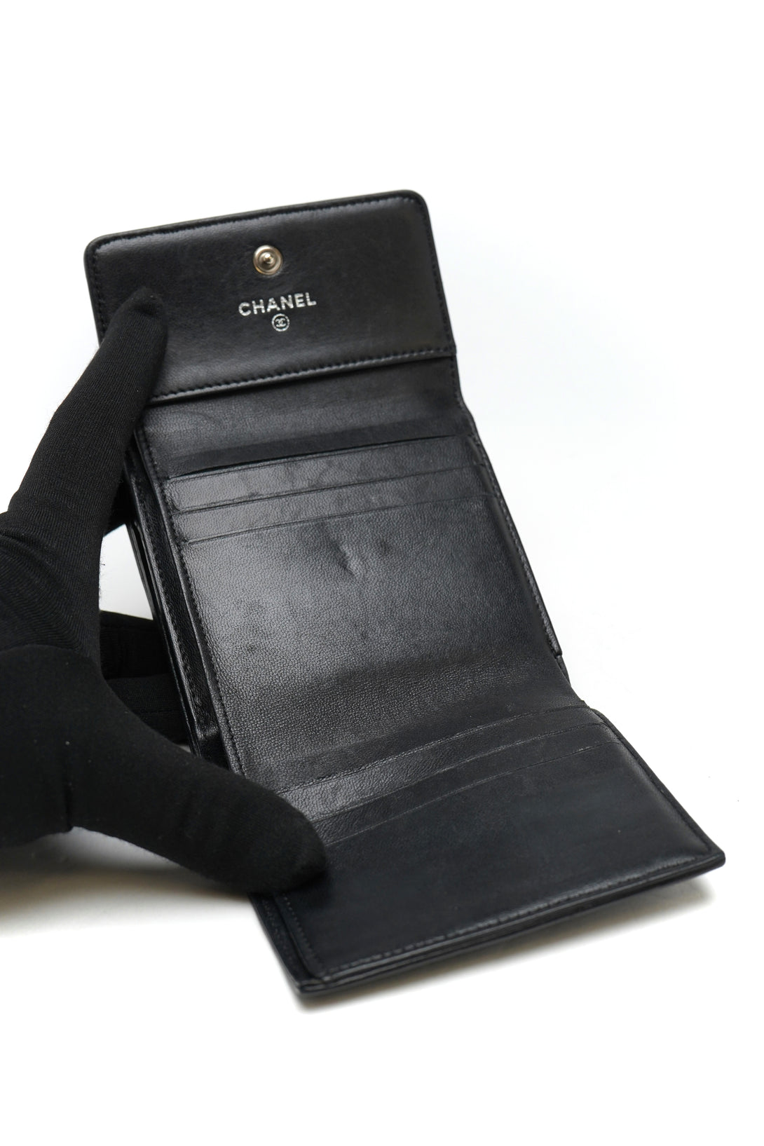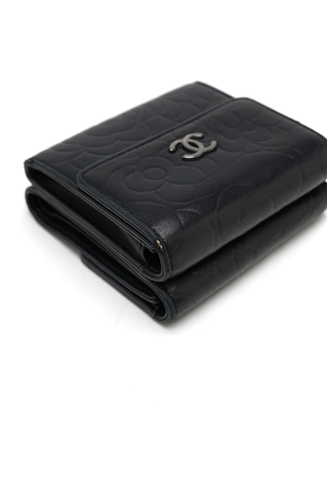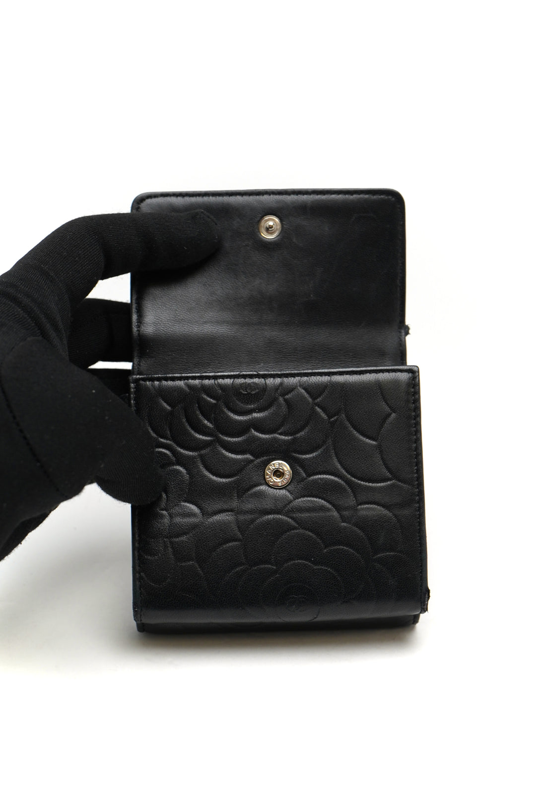 Chanel Lambskin Double Embossed Camellia French Wallet Black