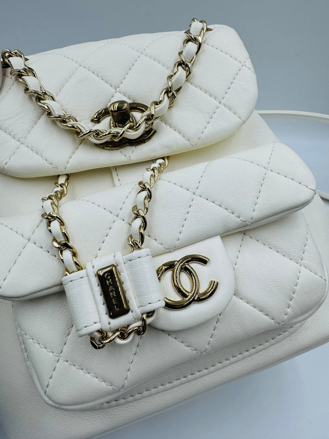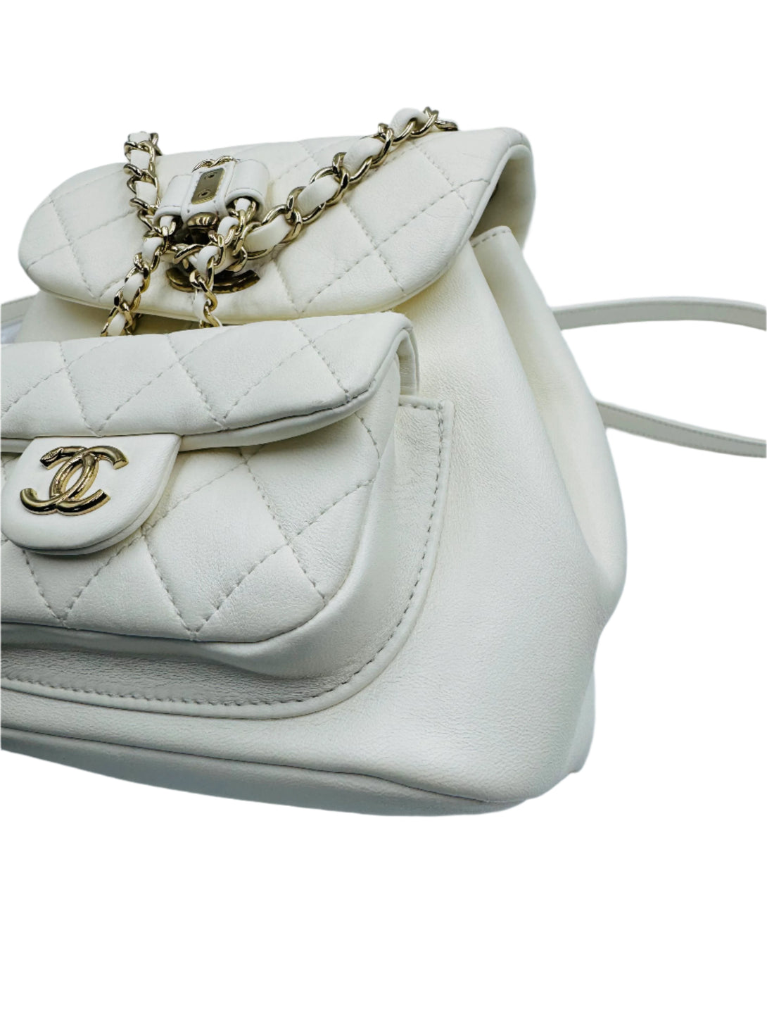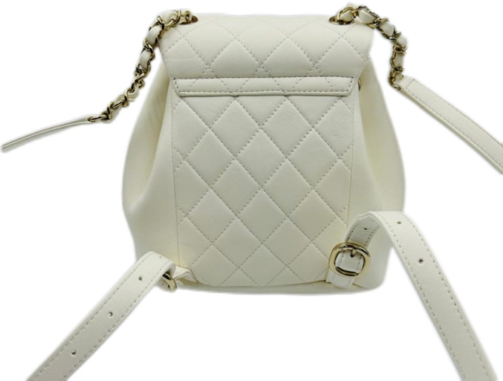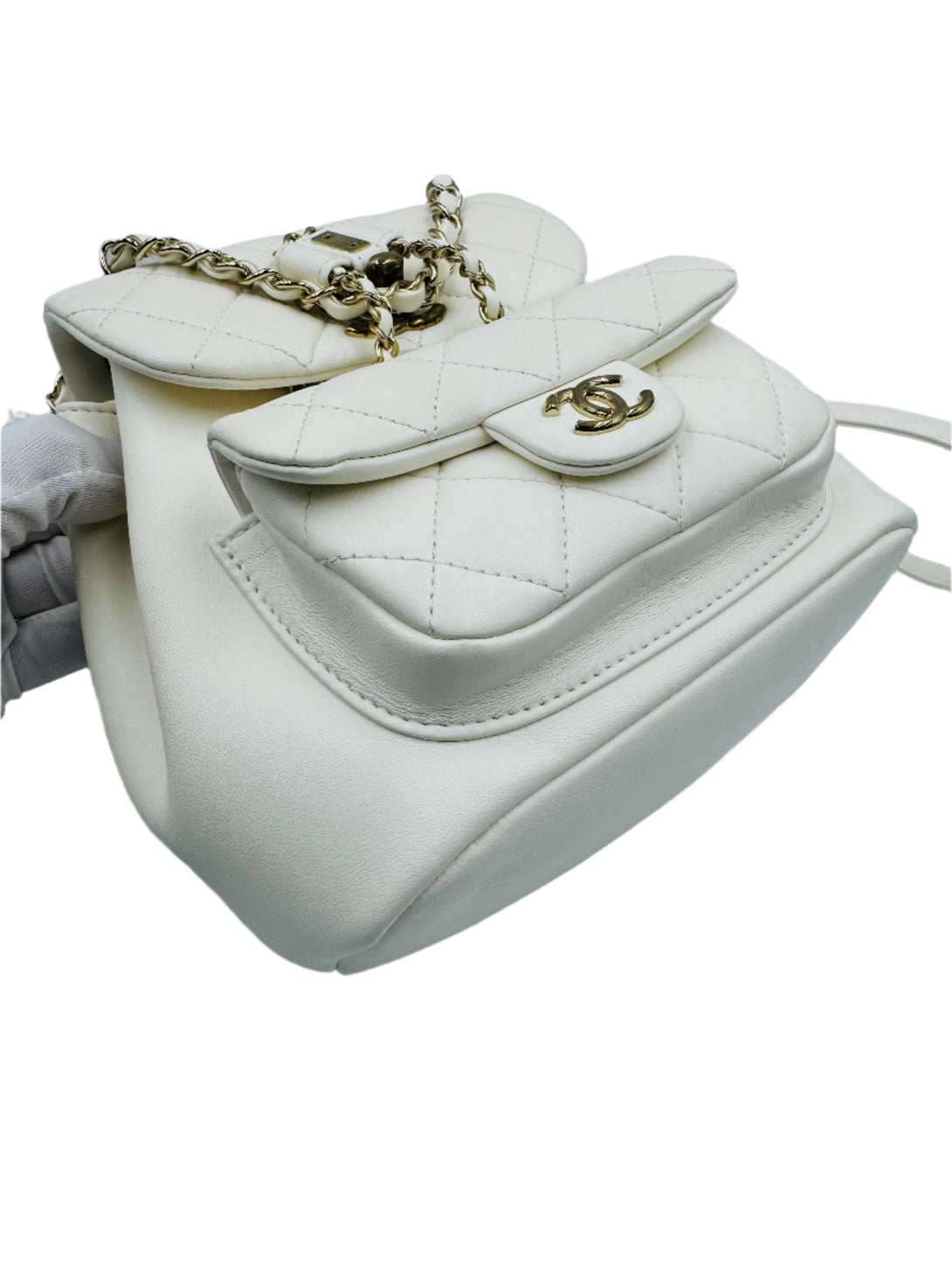 Chanel Lambskin Quilted Small Duma Drawstring Backpack White