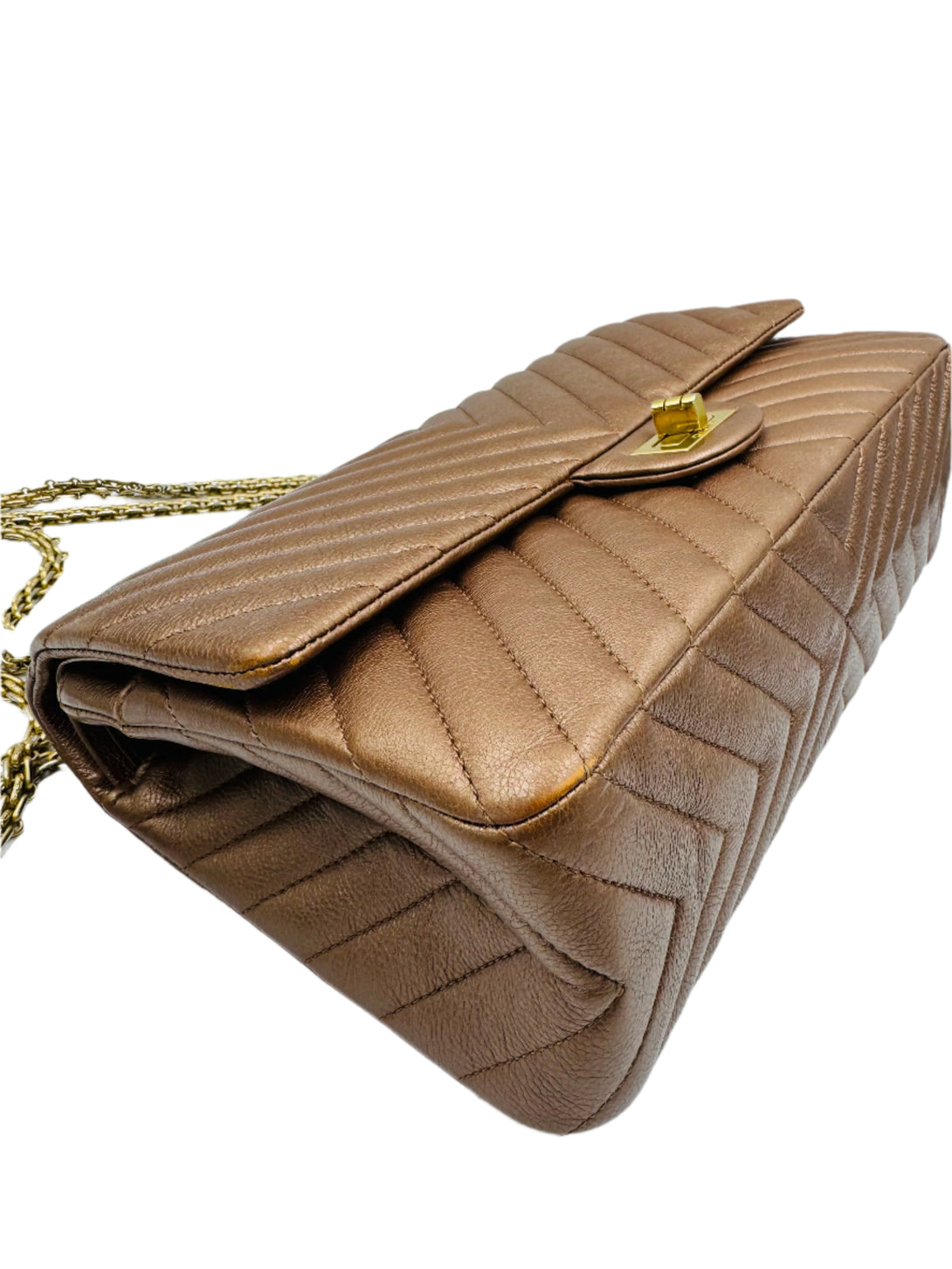 Chanel Metallic Calfskin Chevron Quilted 2.55 Reissue 226 Flap Gold