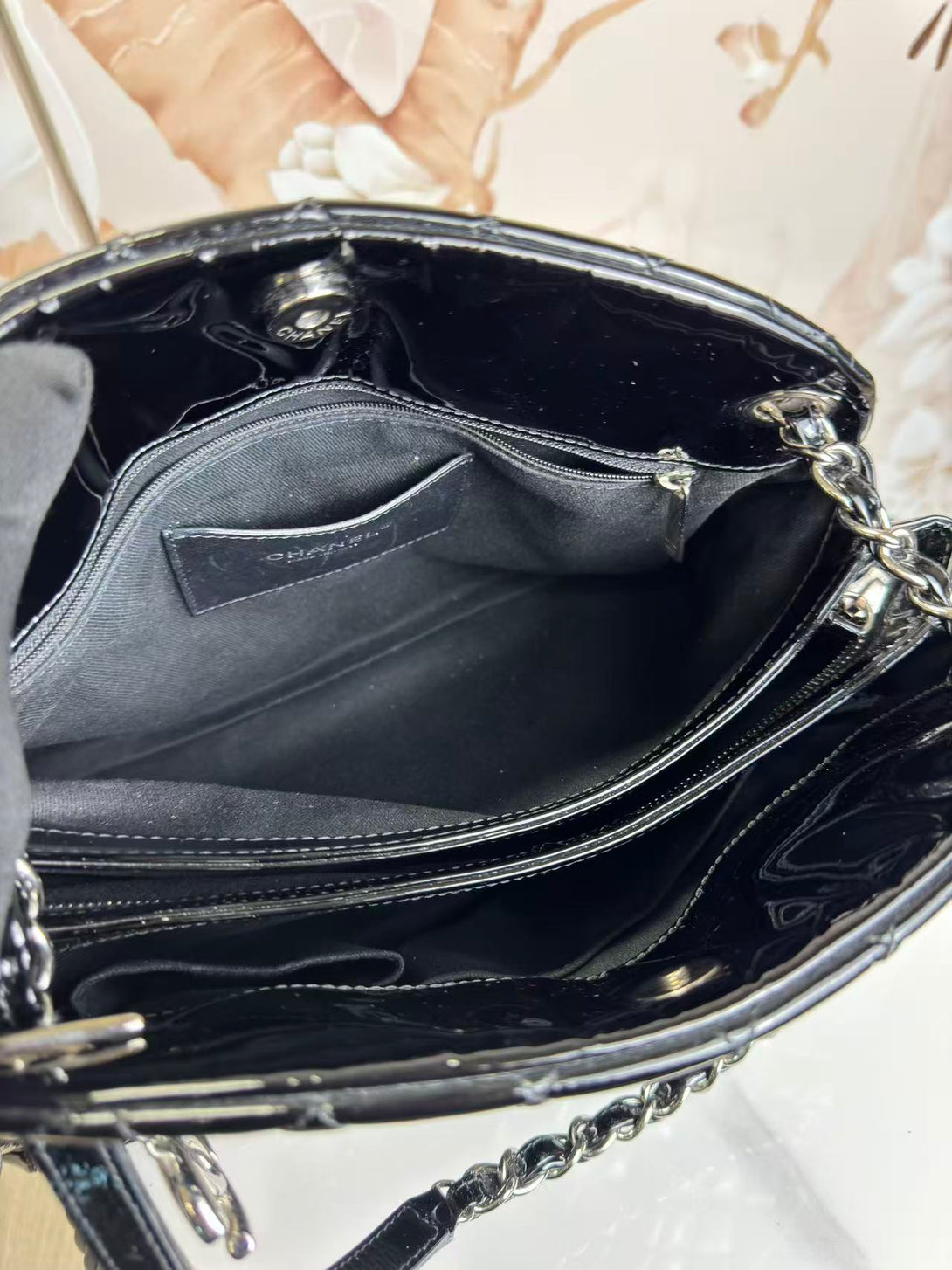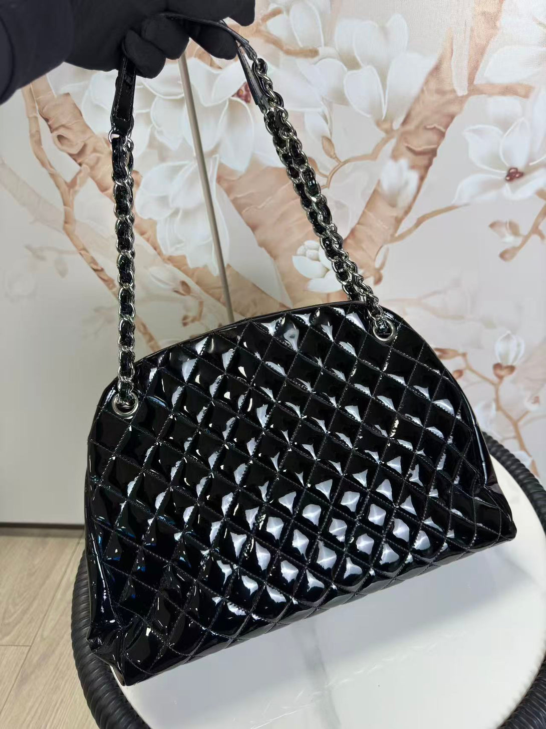 Chanel Patent Quilted Large Just Mademoiselle Bowling Bag Black
