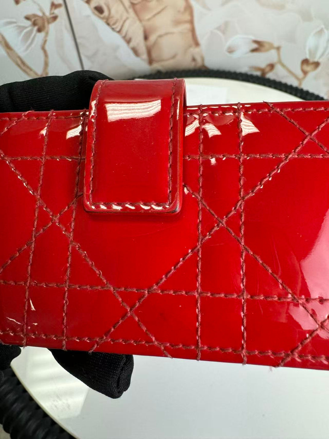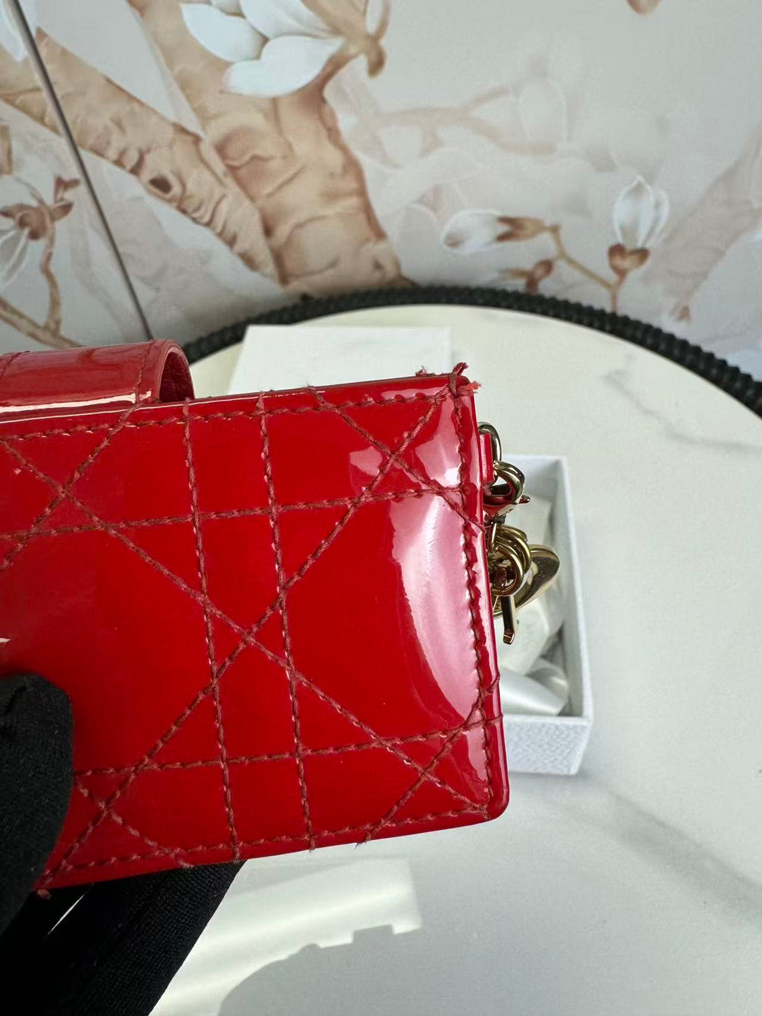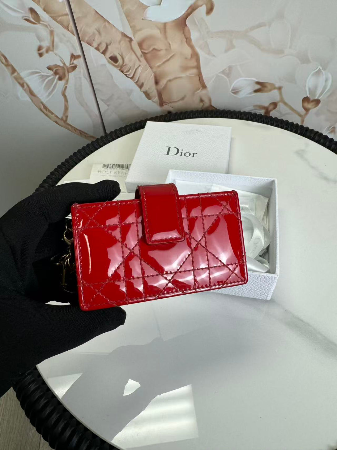 Christian Dior Patent Cannage Lady Dior 5-Gusset Card Holder Red