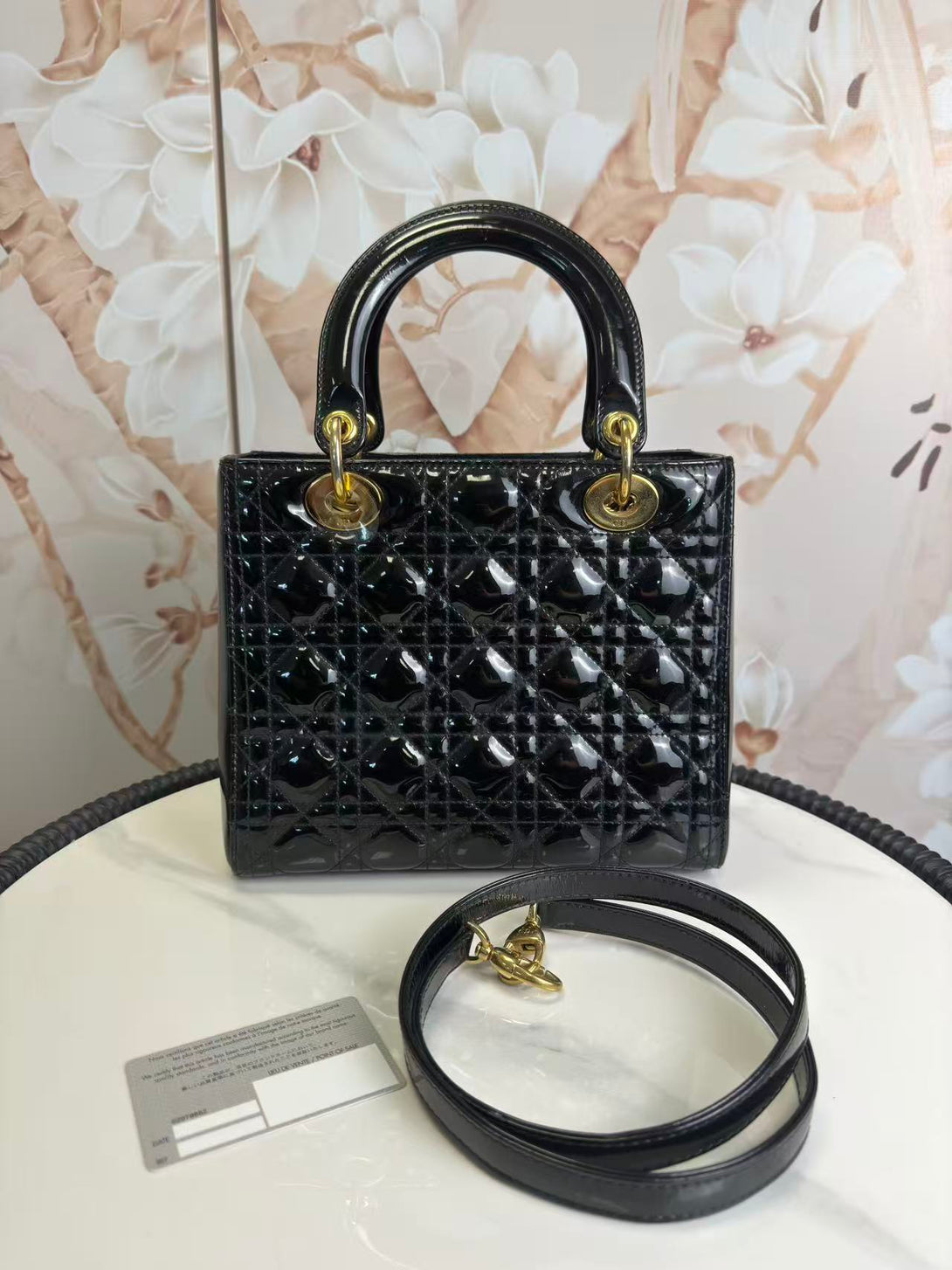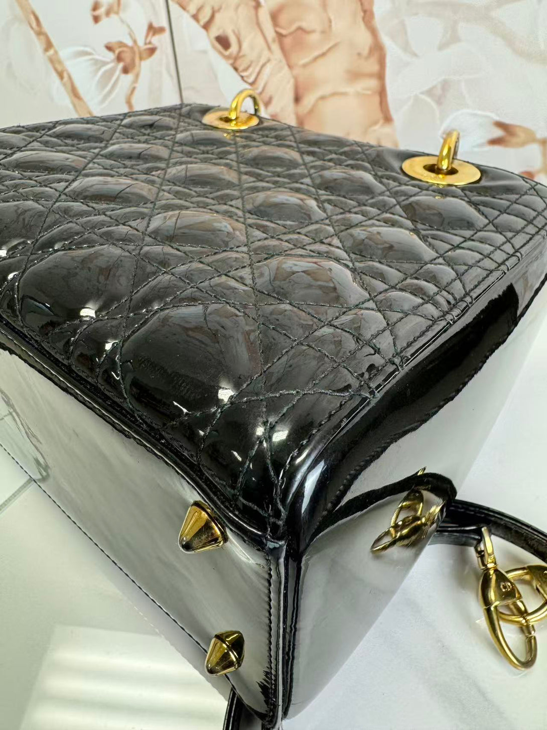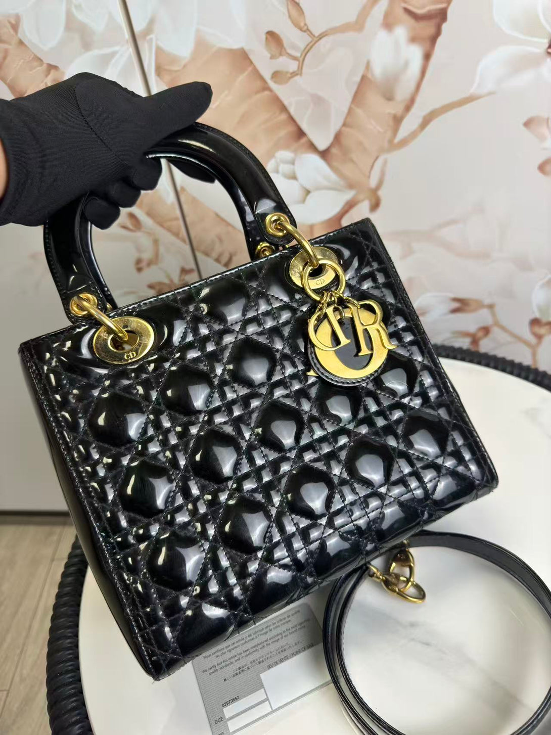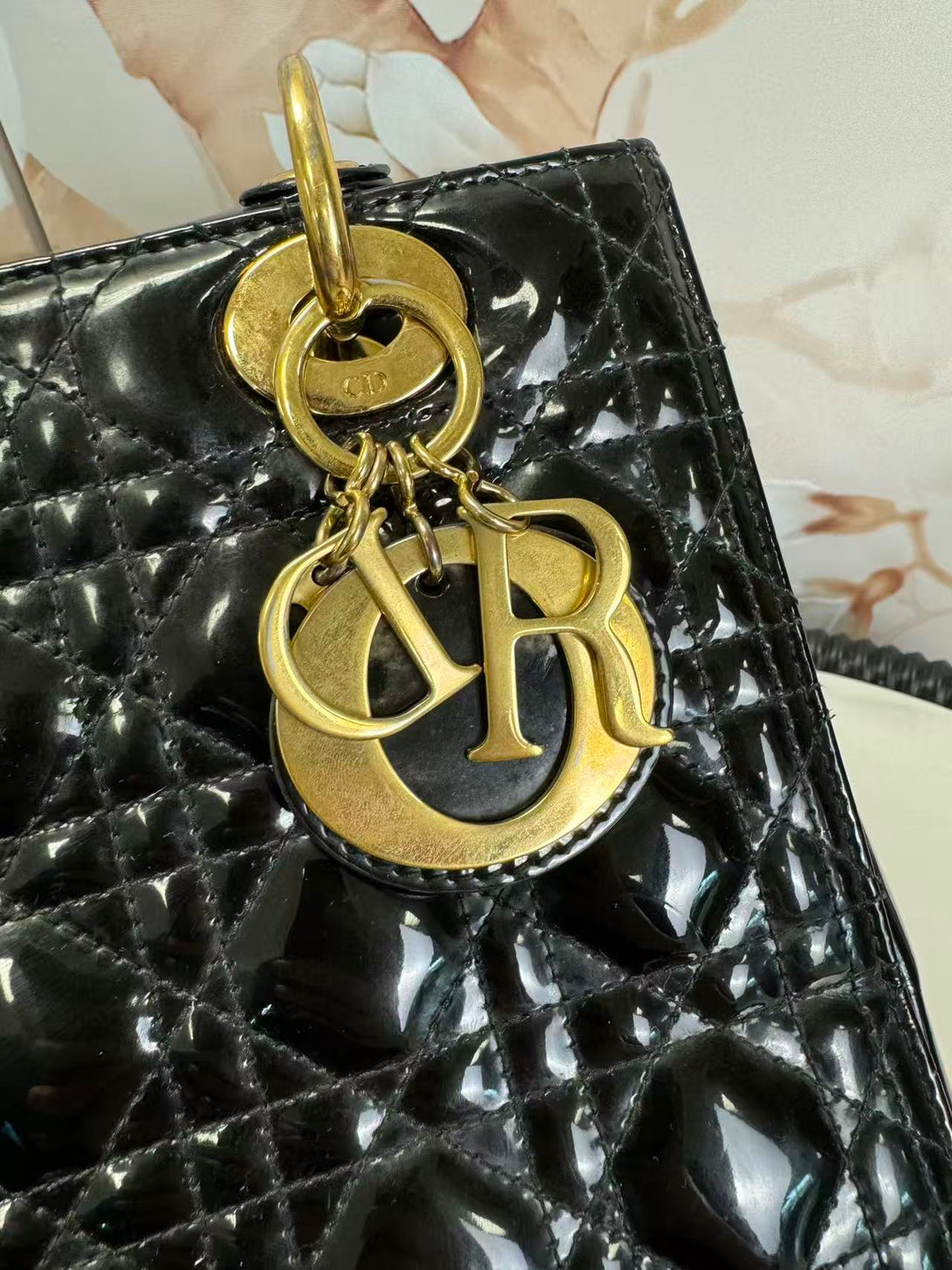 Christian Dior Patent Cannage Medium Lady Dior Black