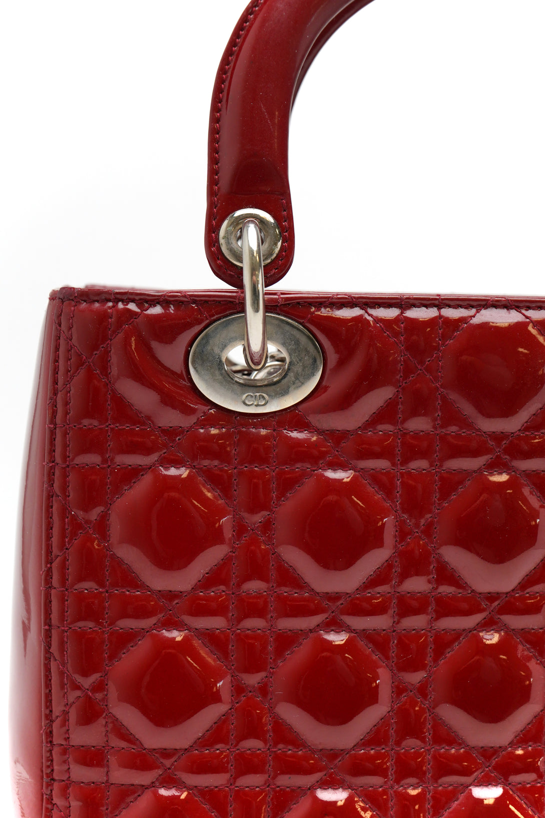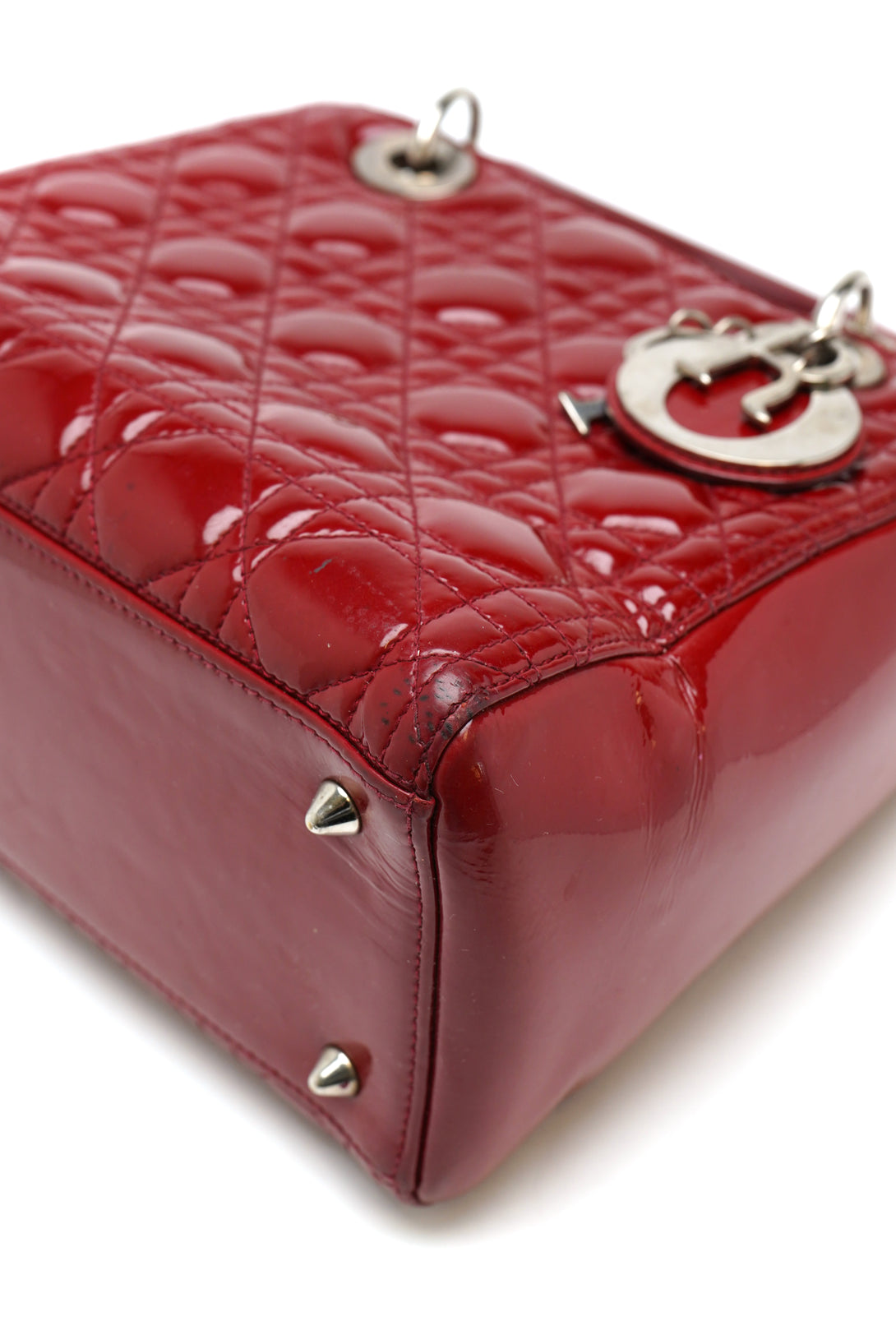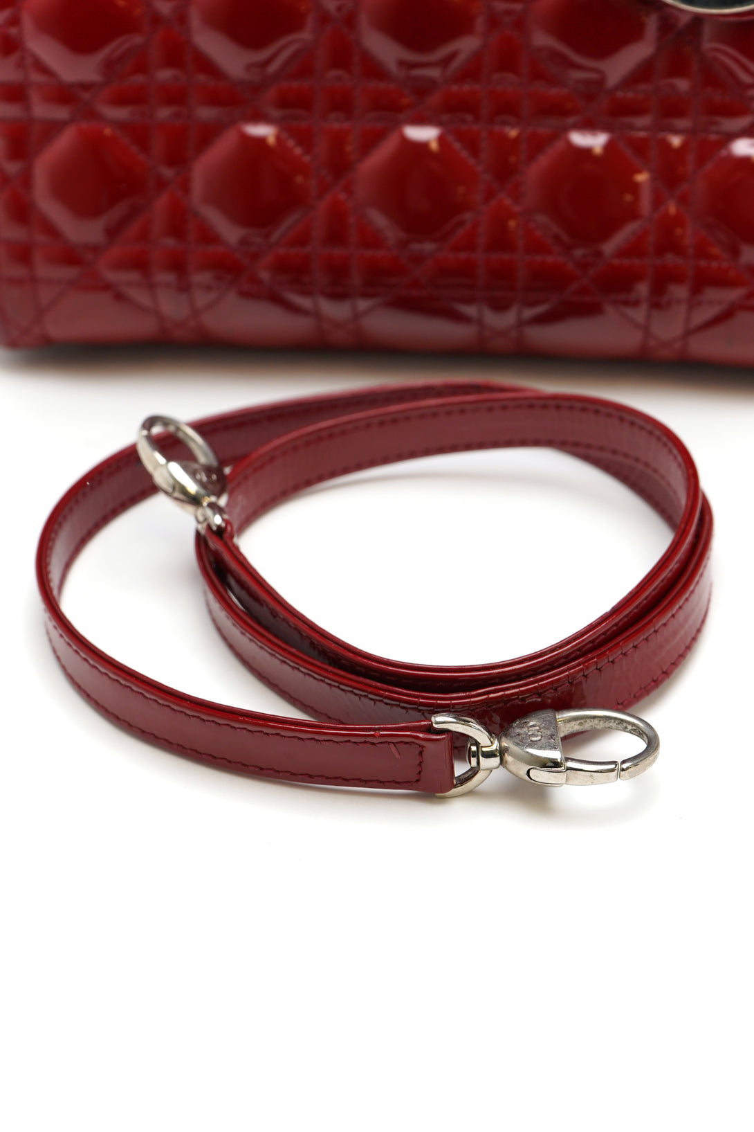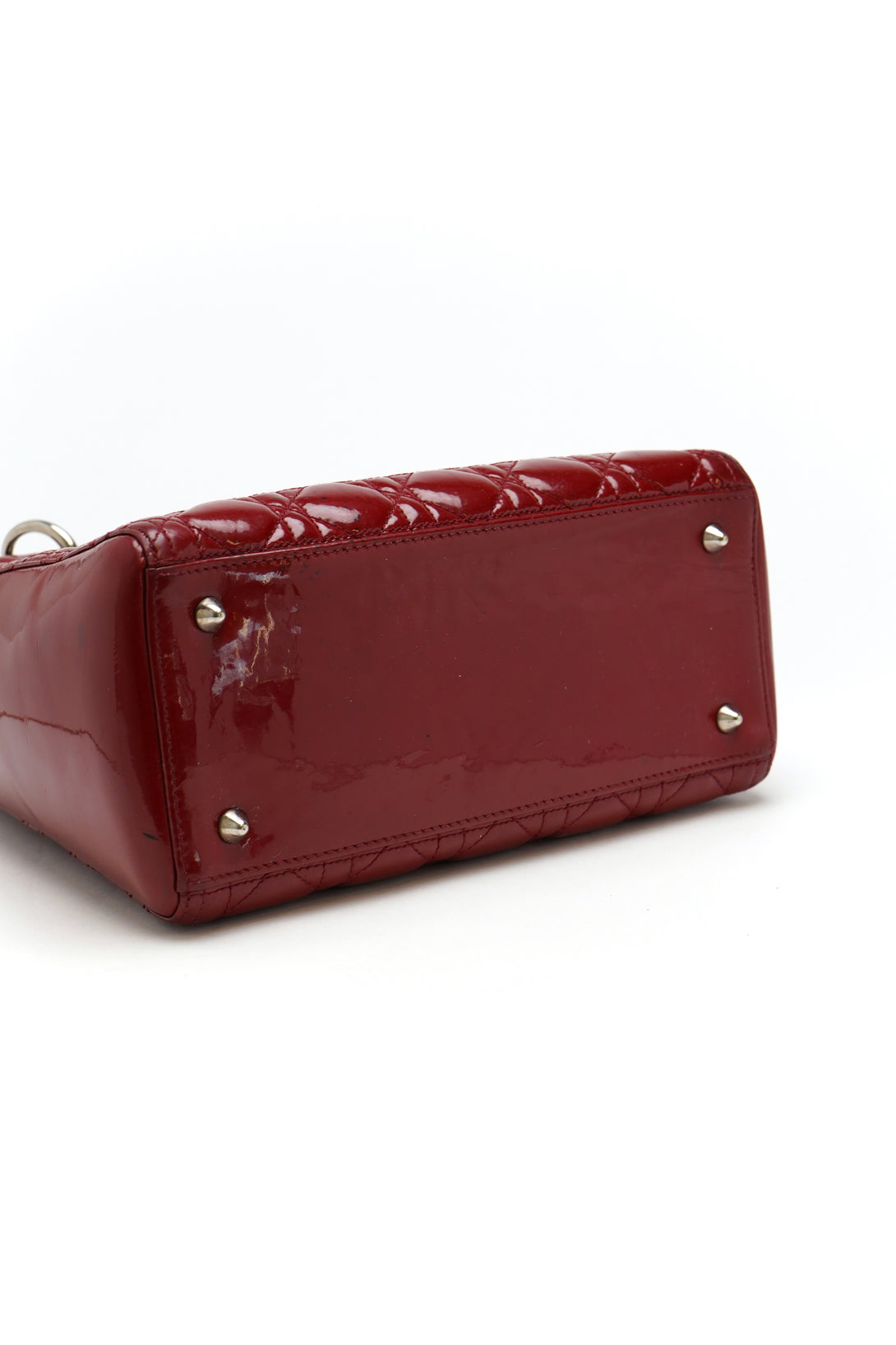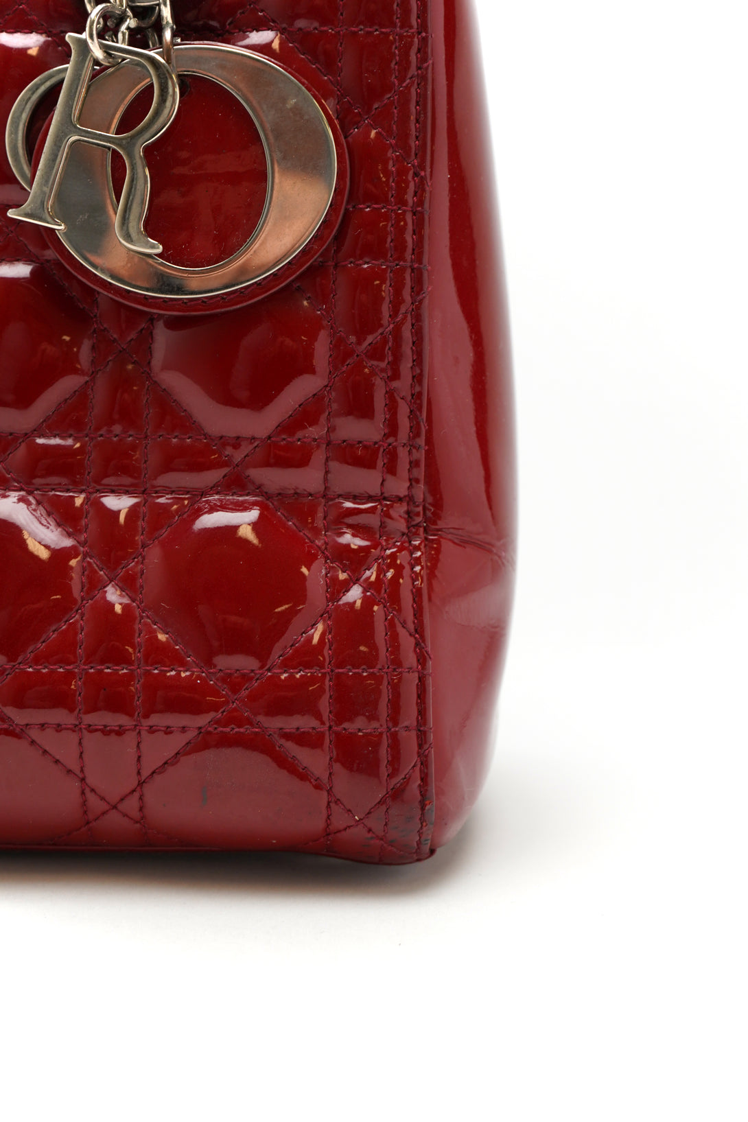 Christian Dior Patent Cannage Medium Lady Dior Burgundy Red