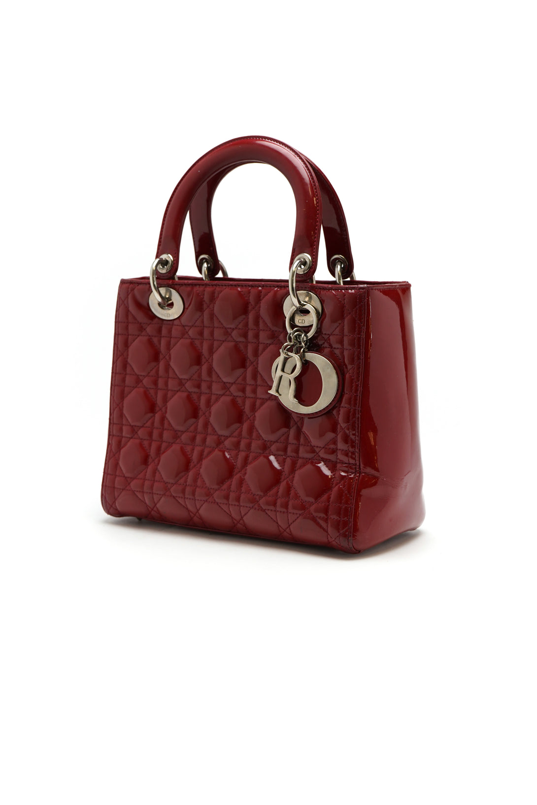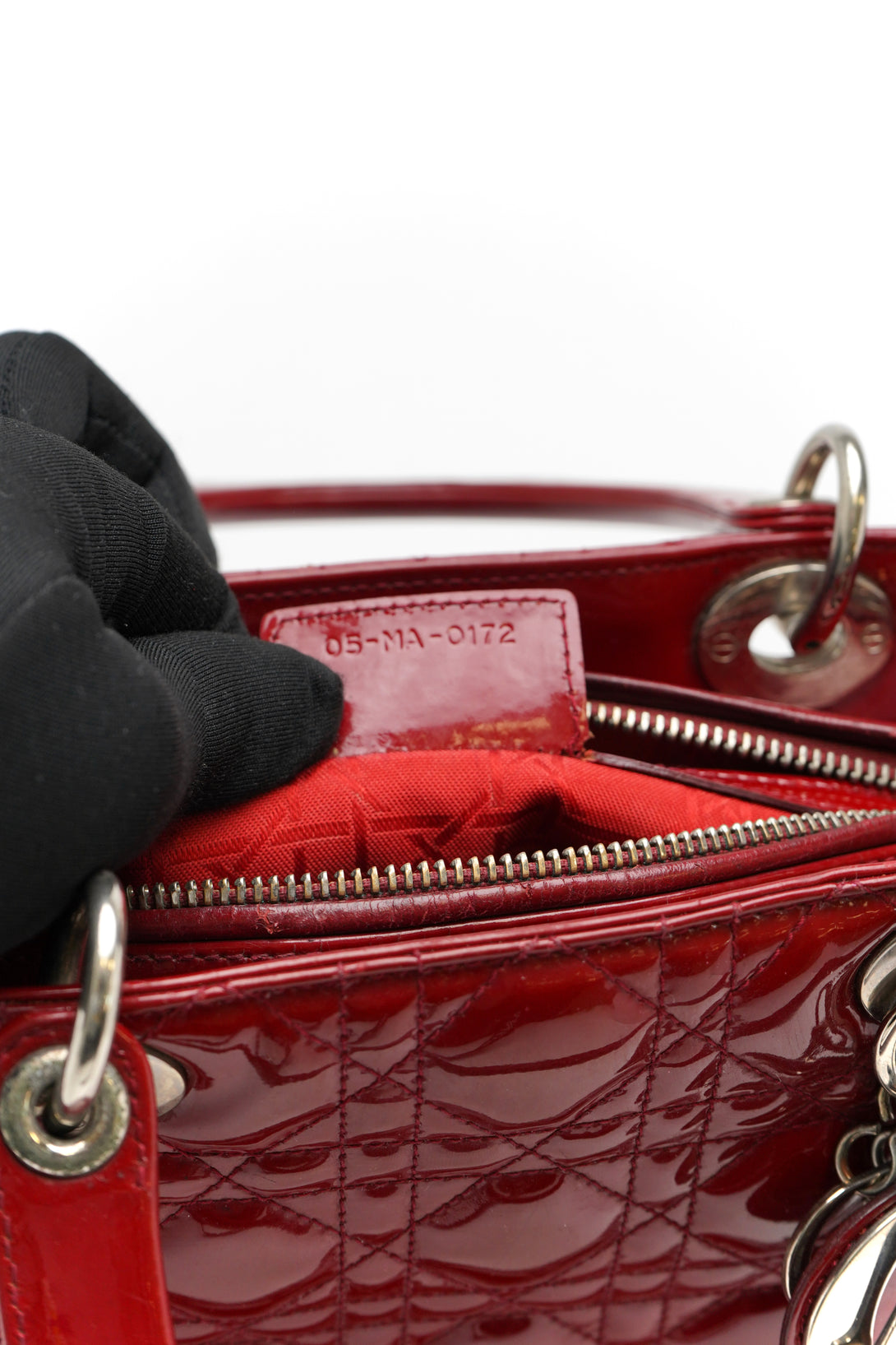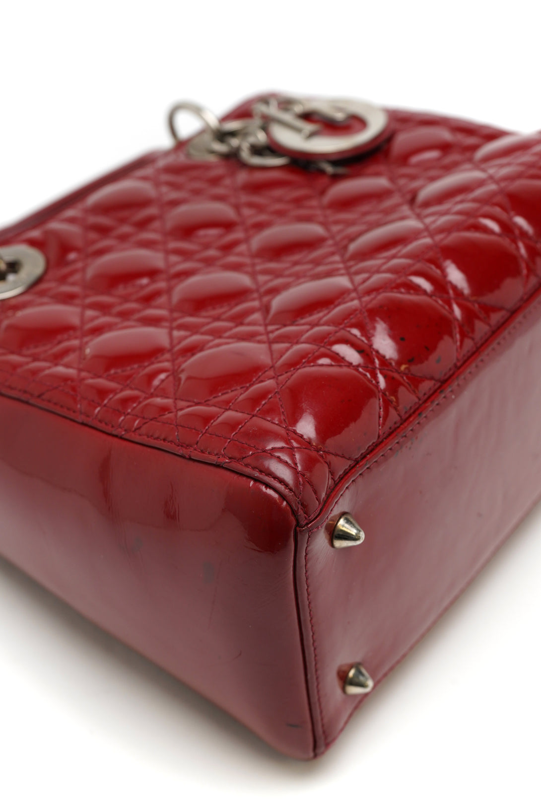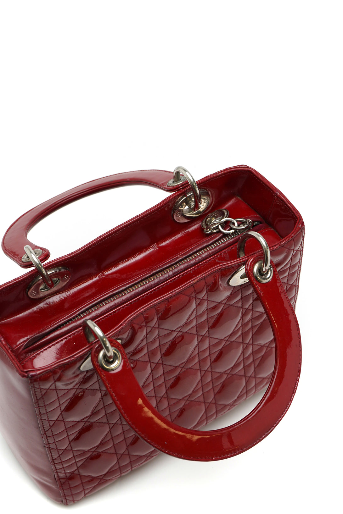 Christian Dior Patent Cannage Medium Lady Dior Burgundy Red