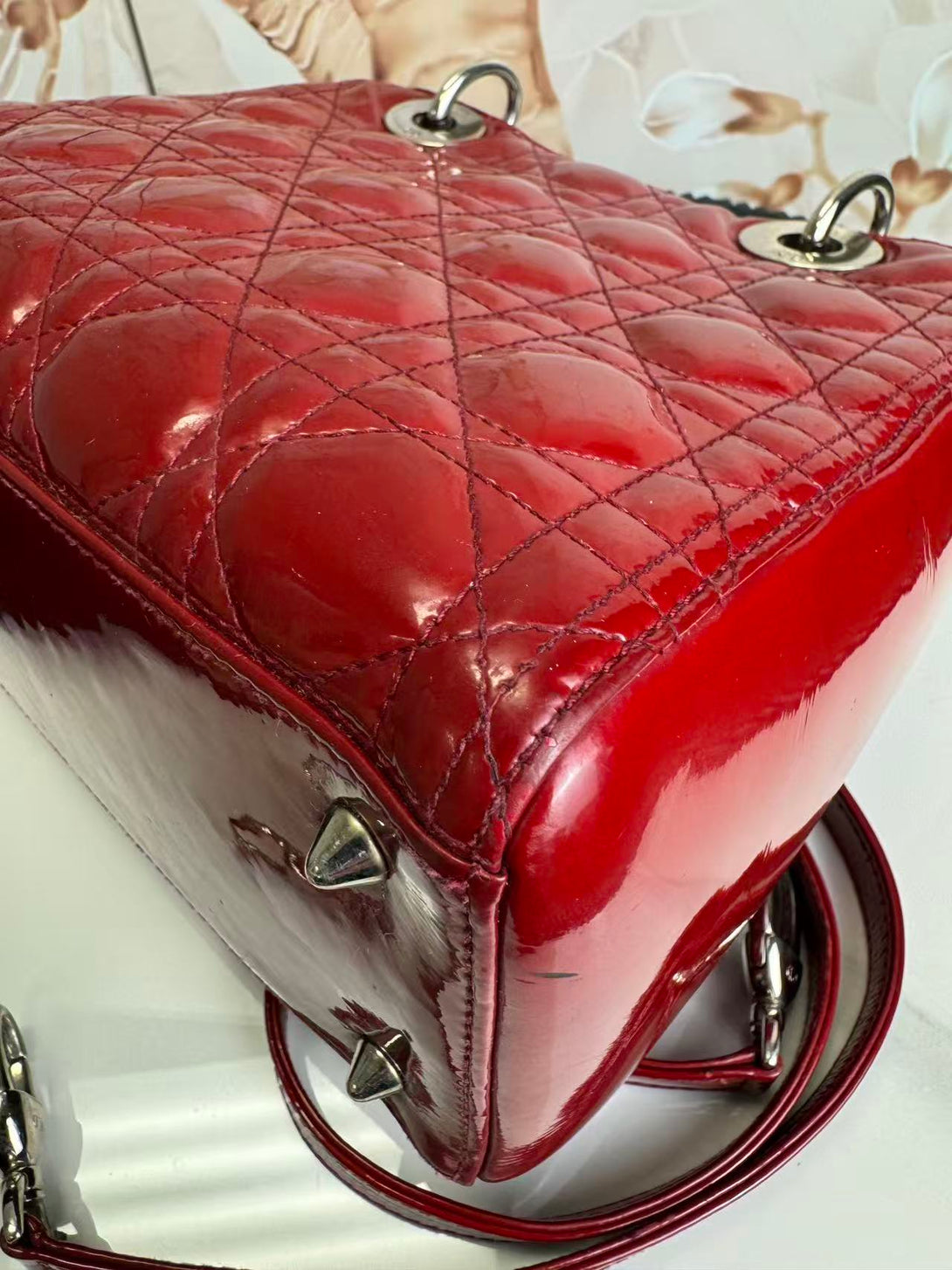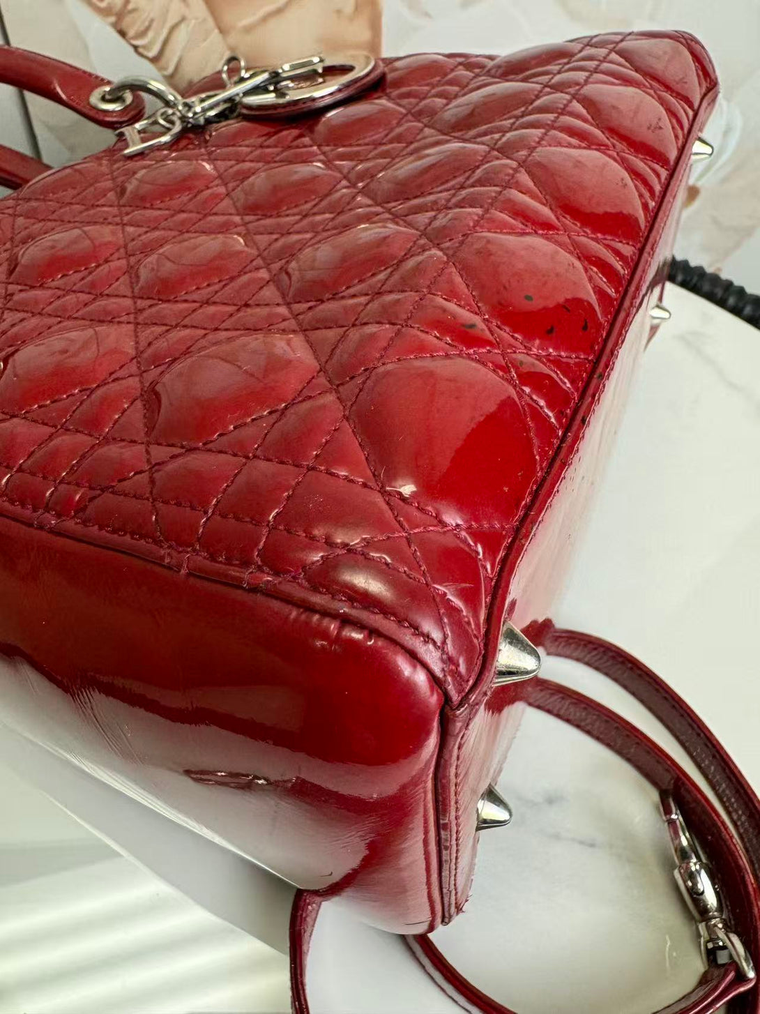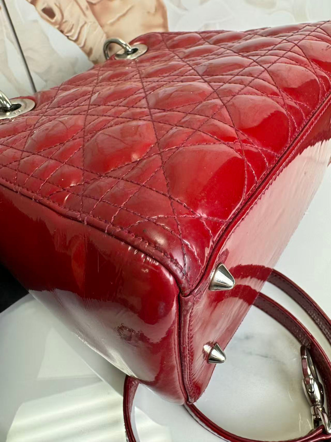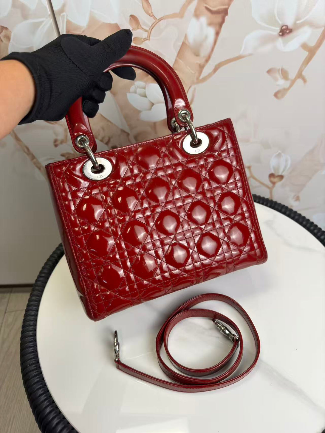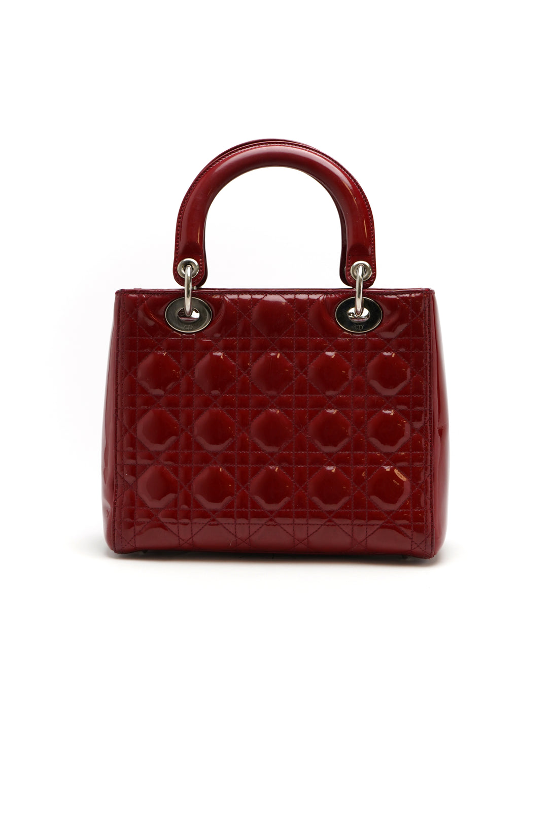 Christian Dior Patent Cannage Medium Lady Dior Burgundy Red