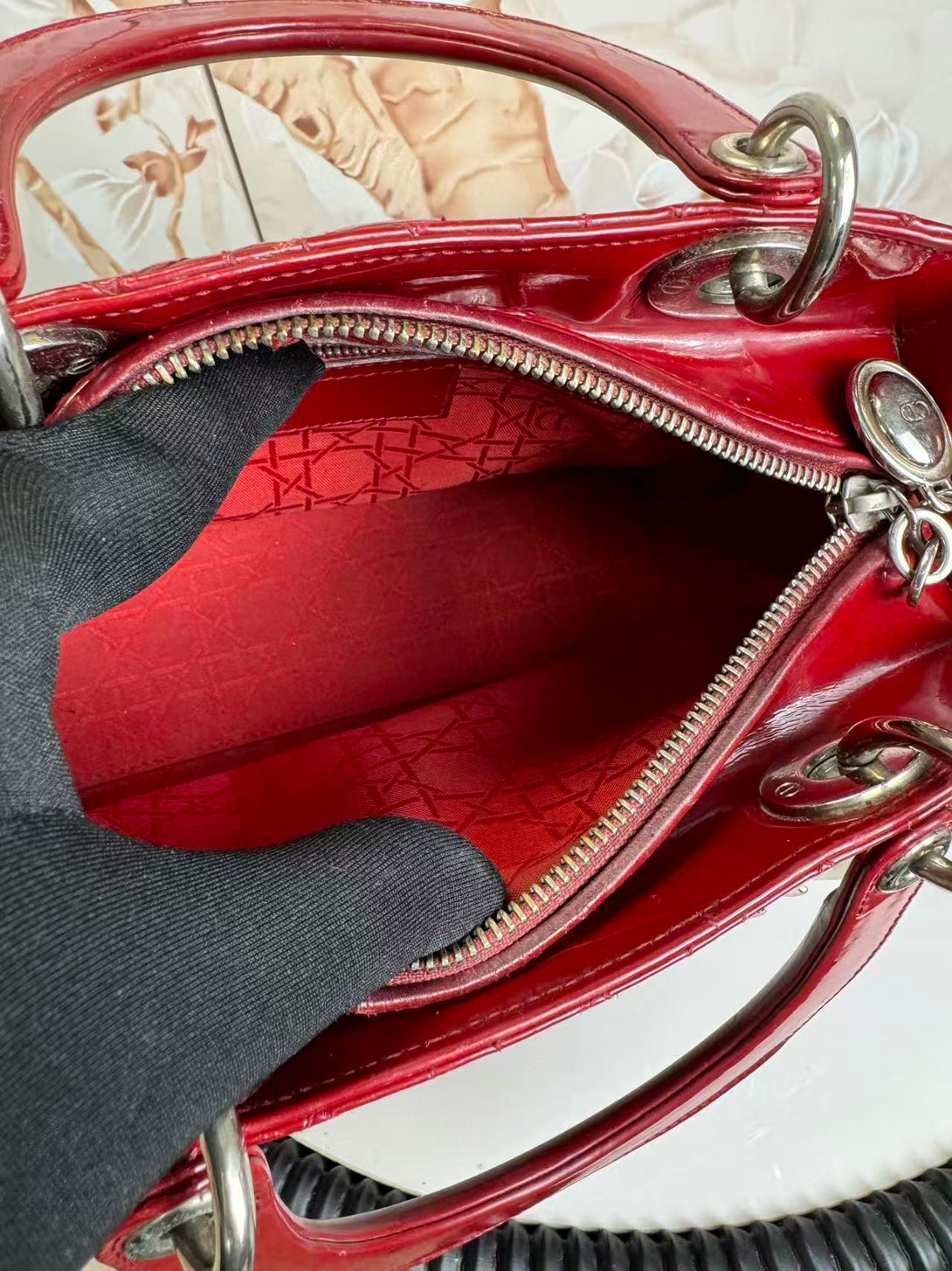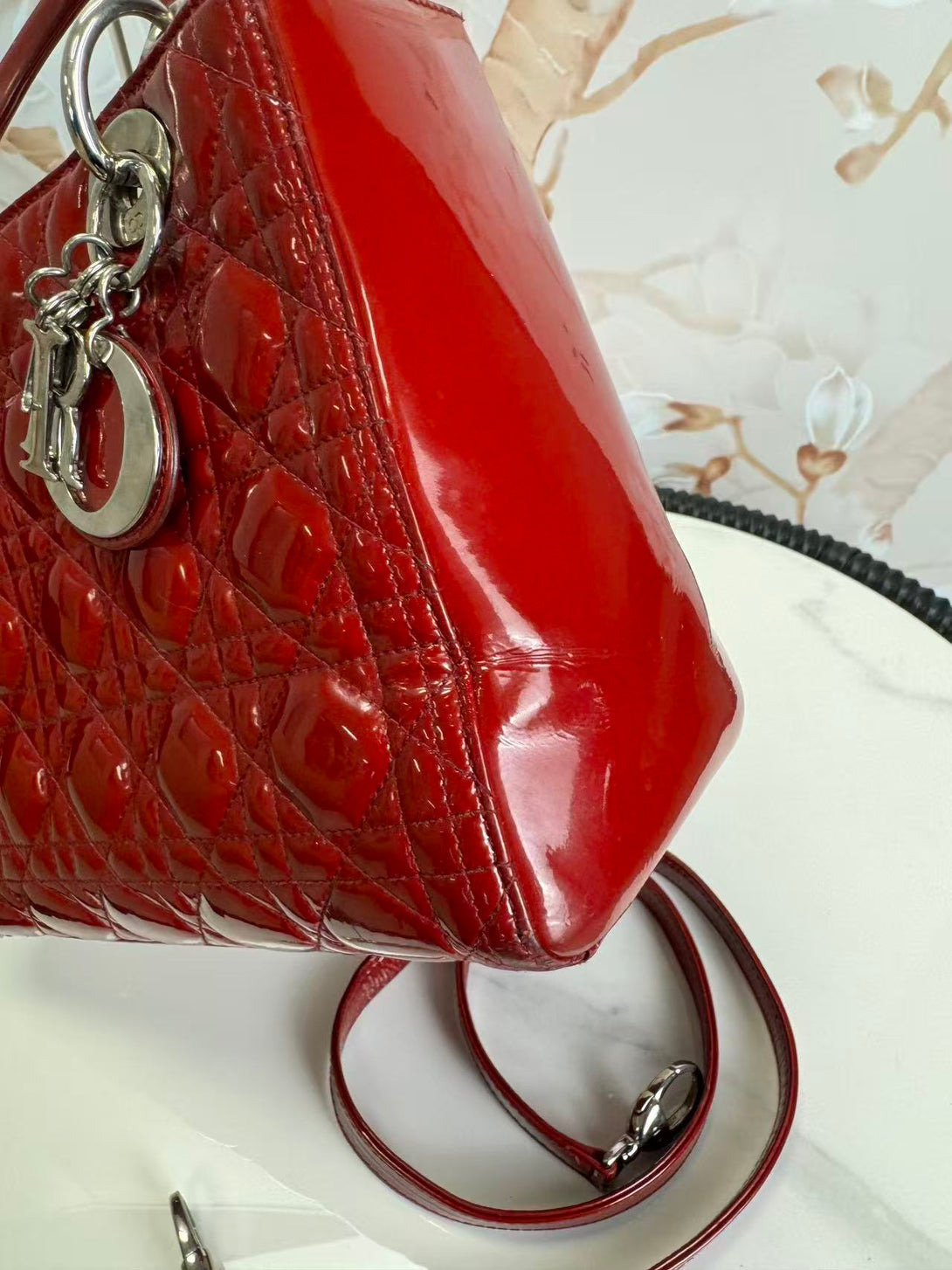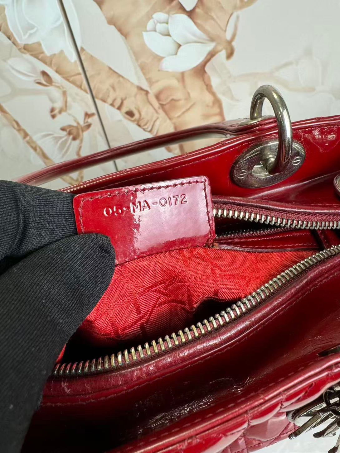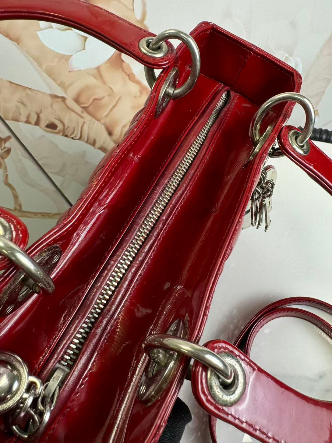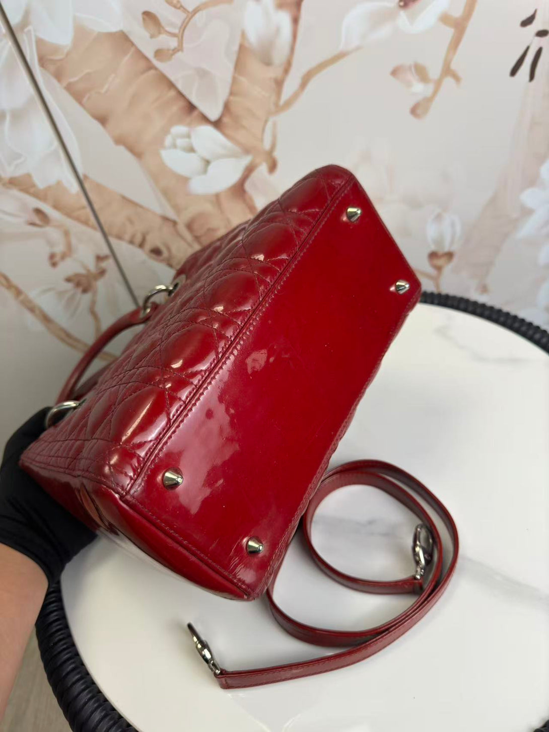 Christian Dior Patent Cannage Medium Lady Dior Burgundy Red