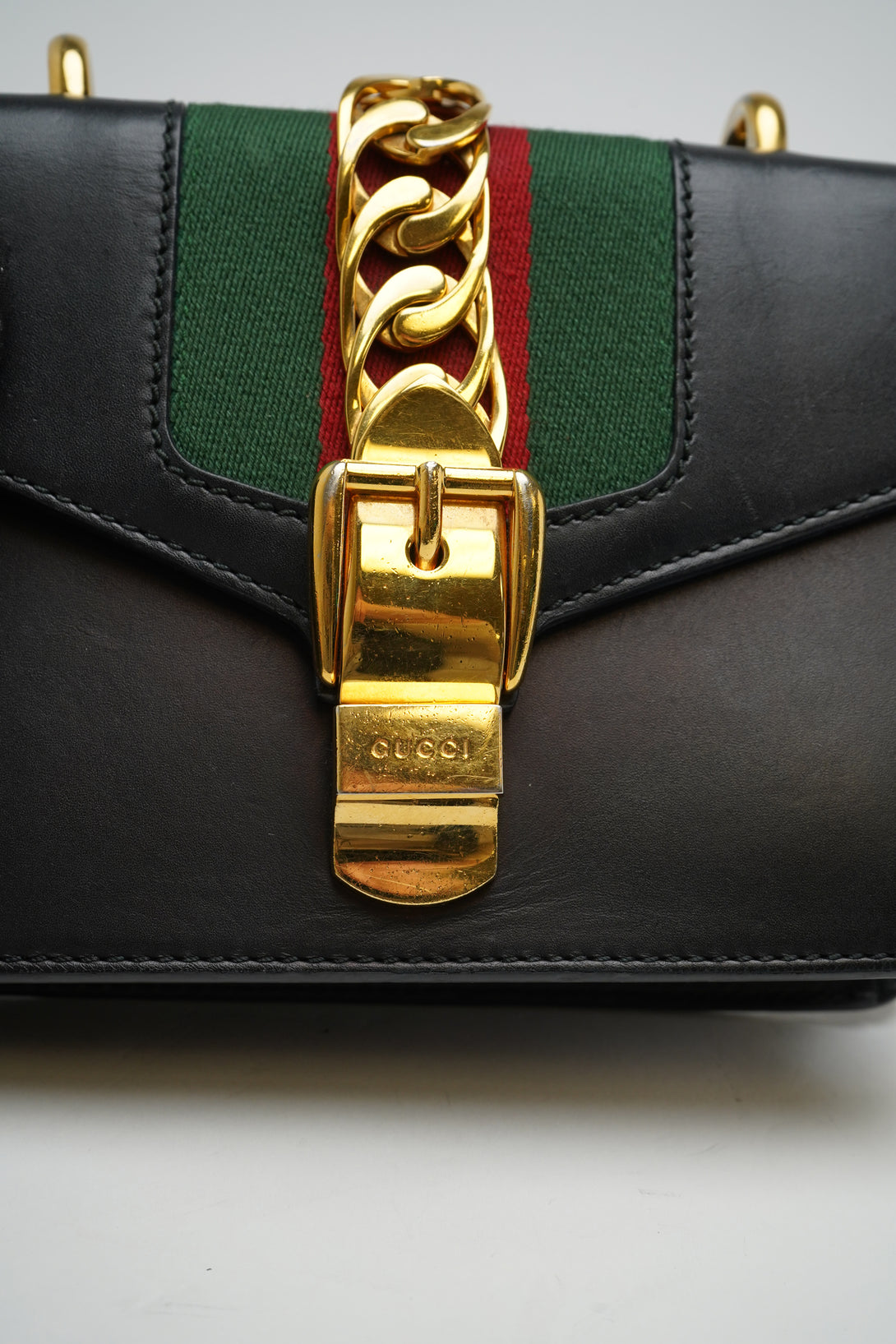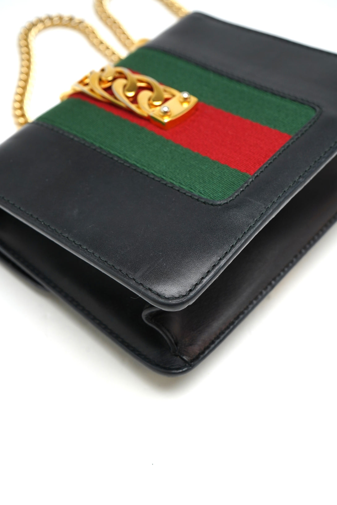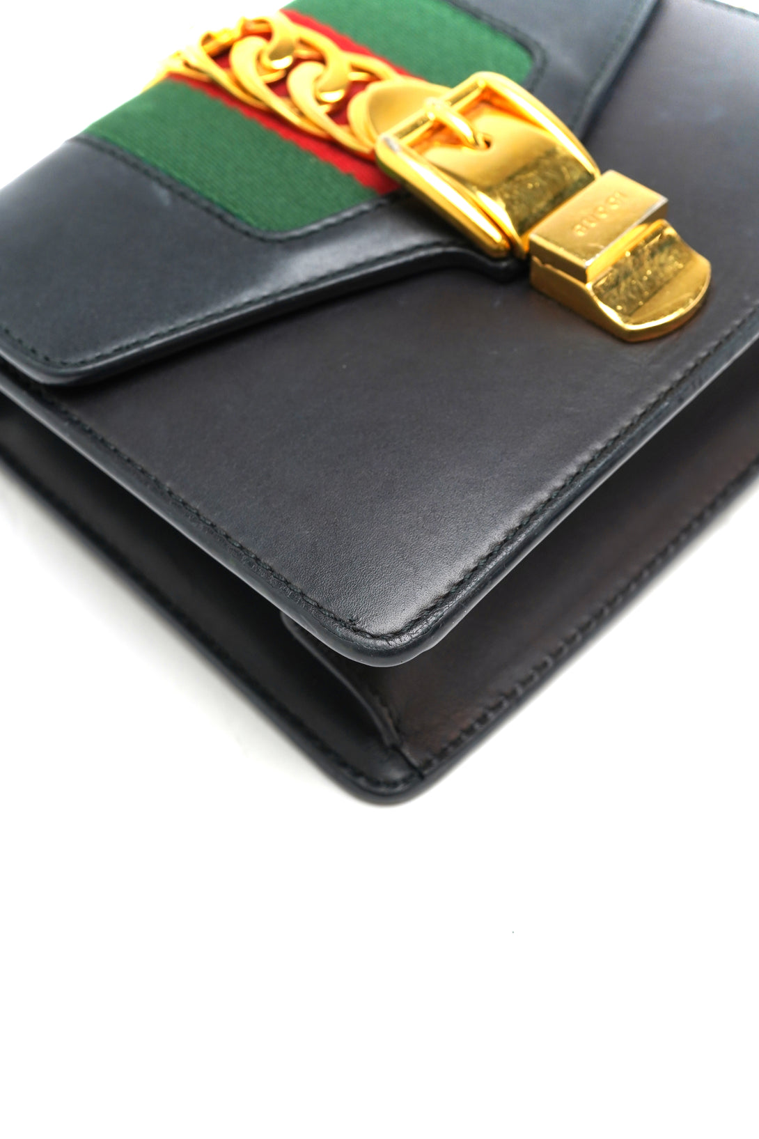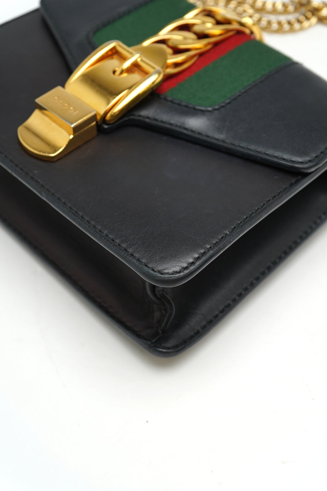 Gucci Calfskin Mini Sylvie Chain Shoulder Bag Black