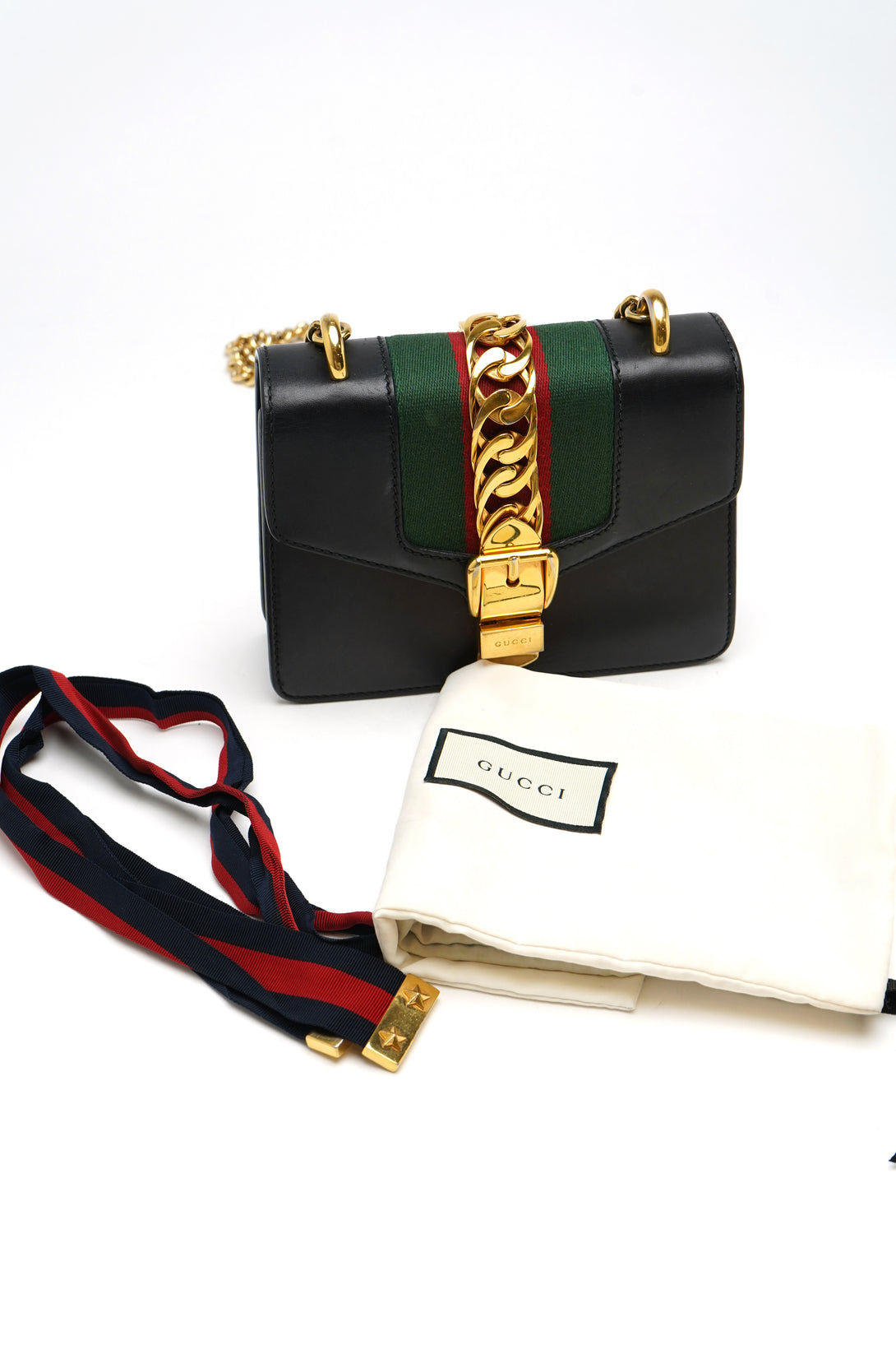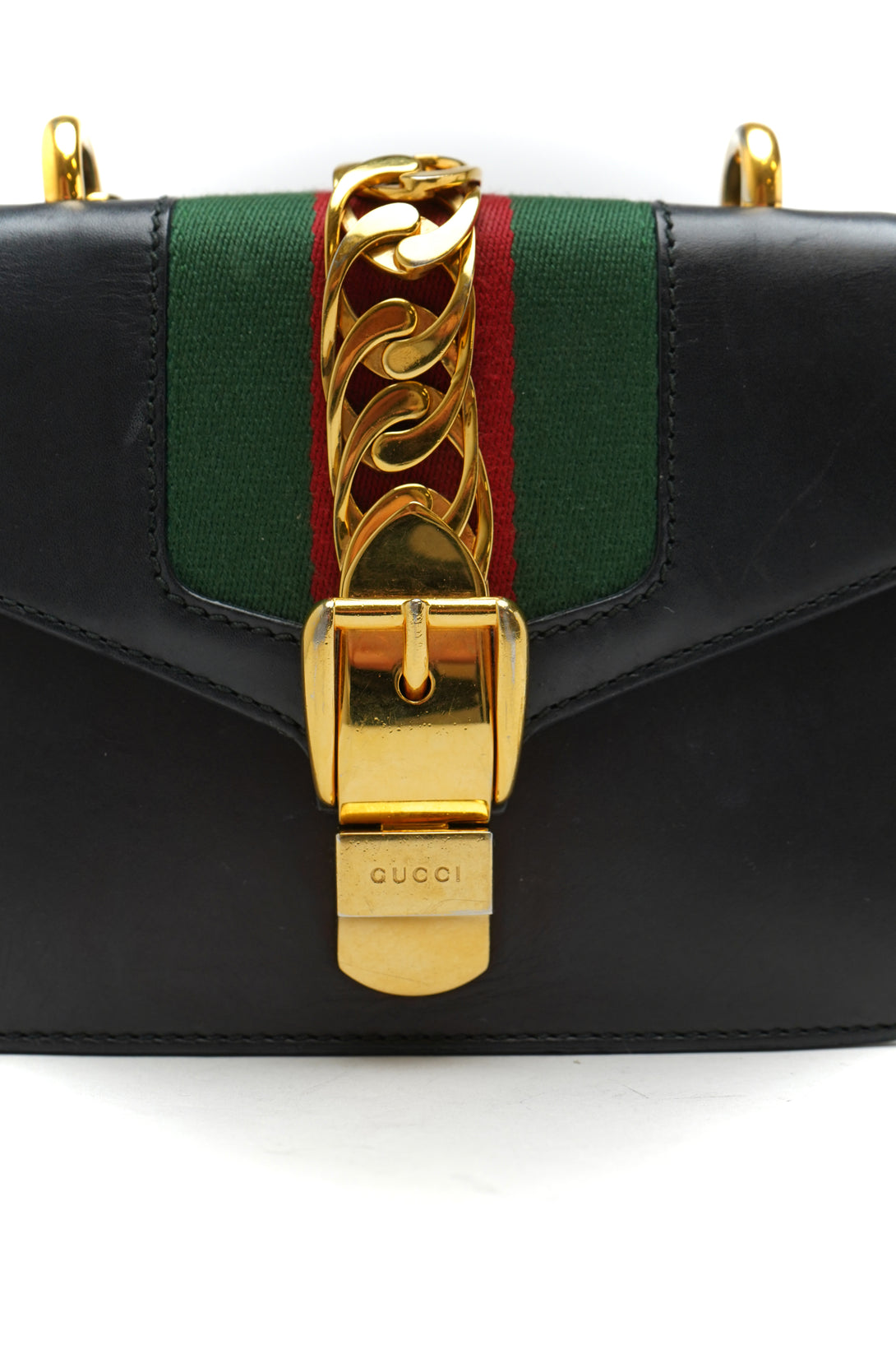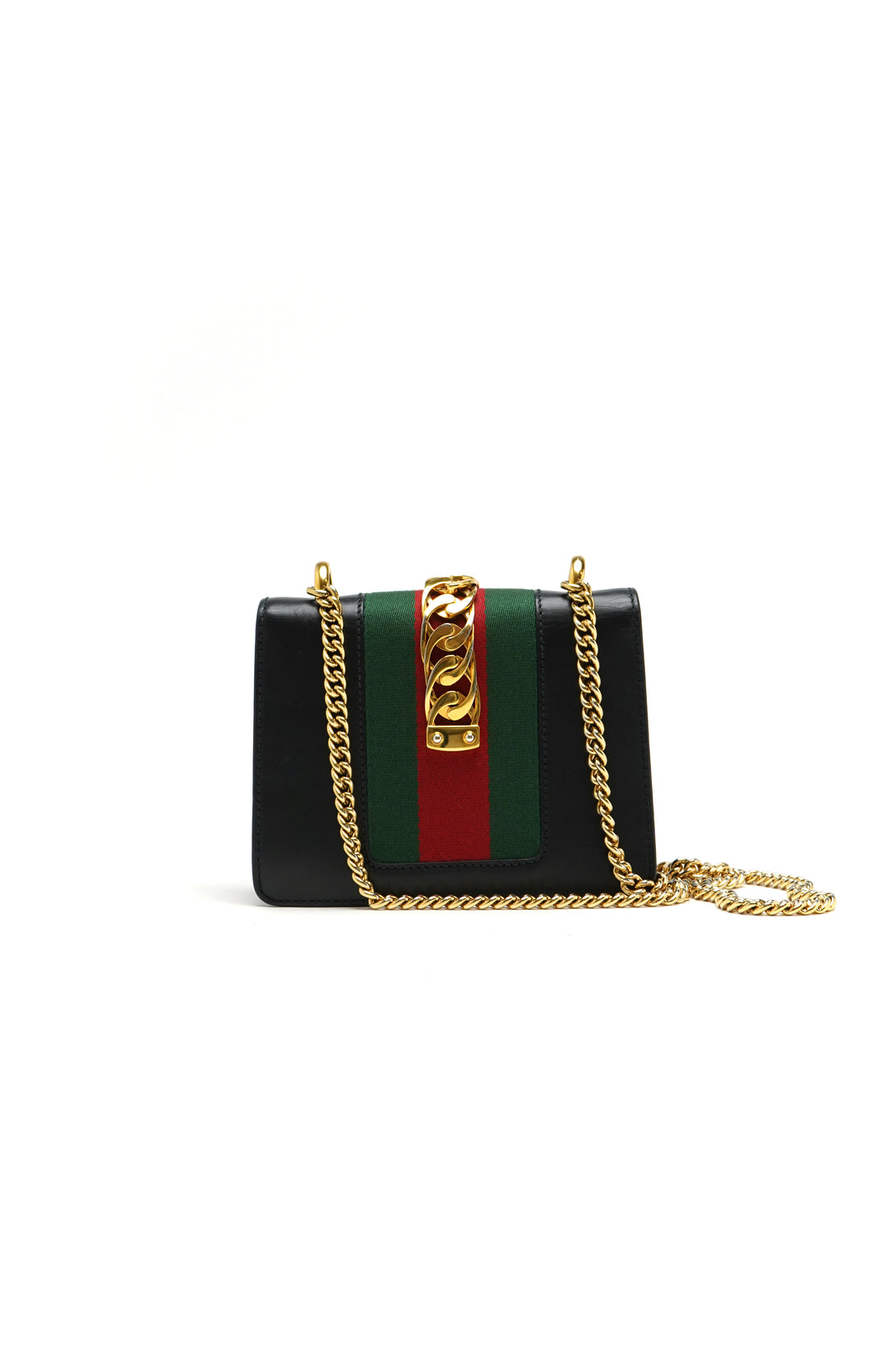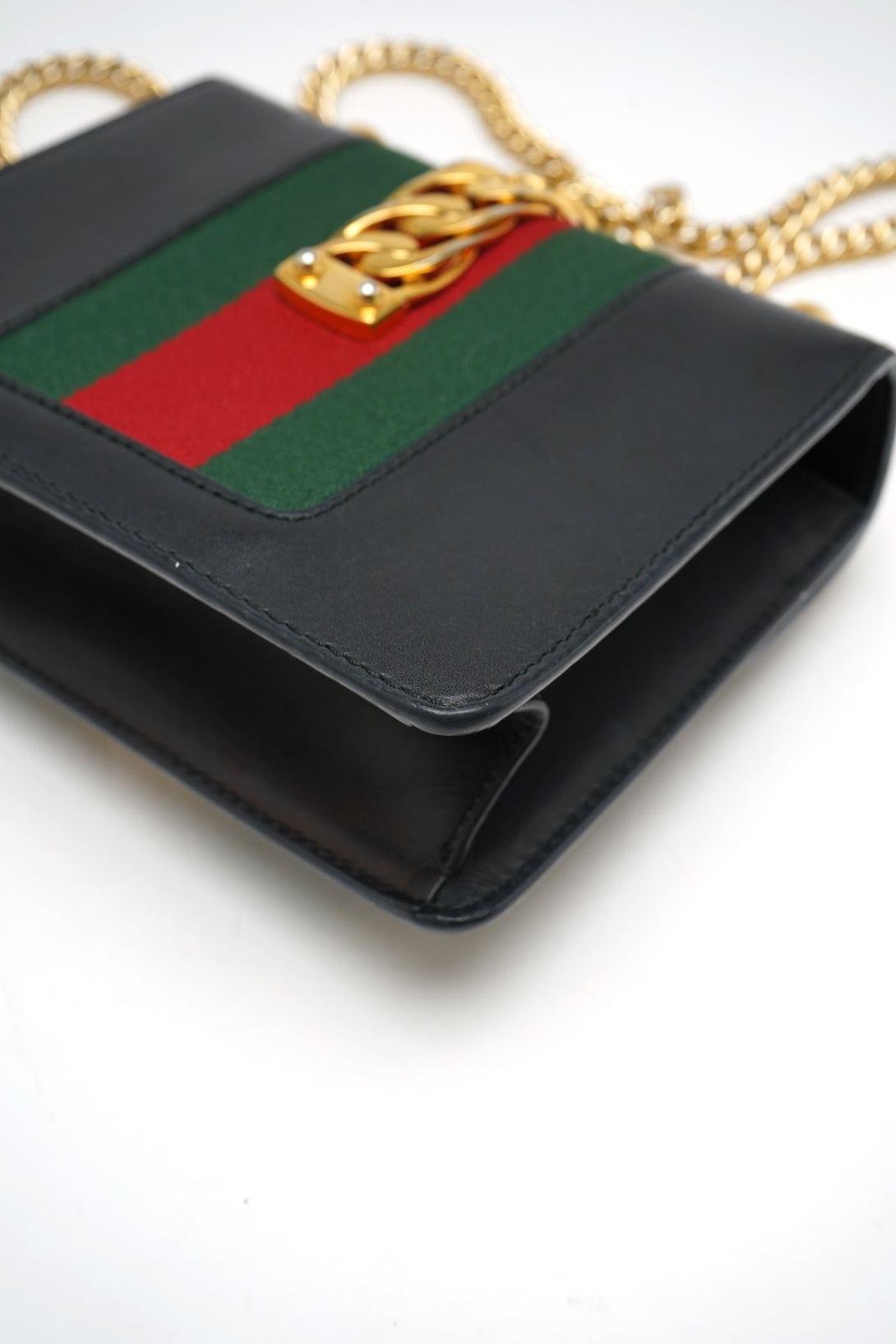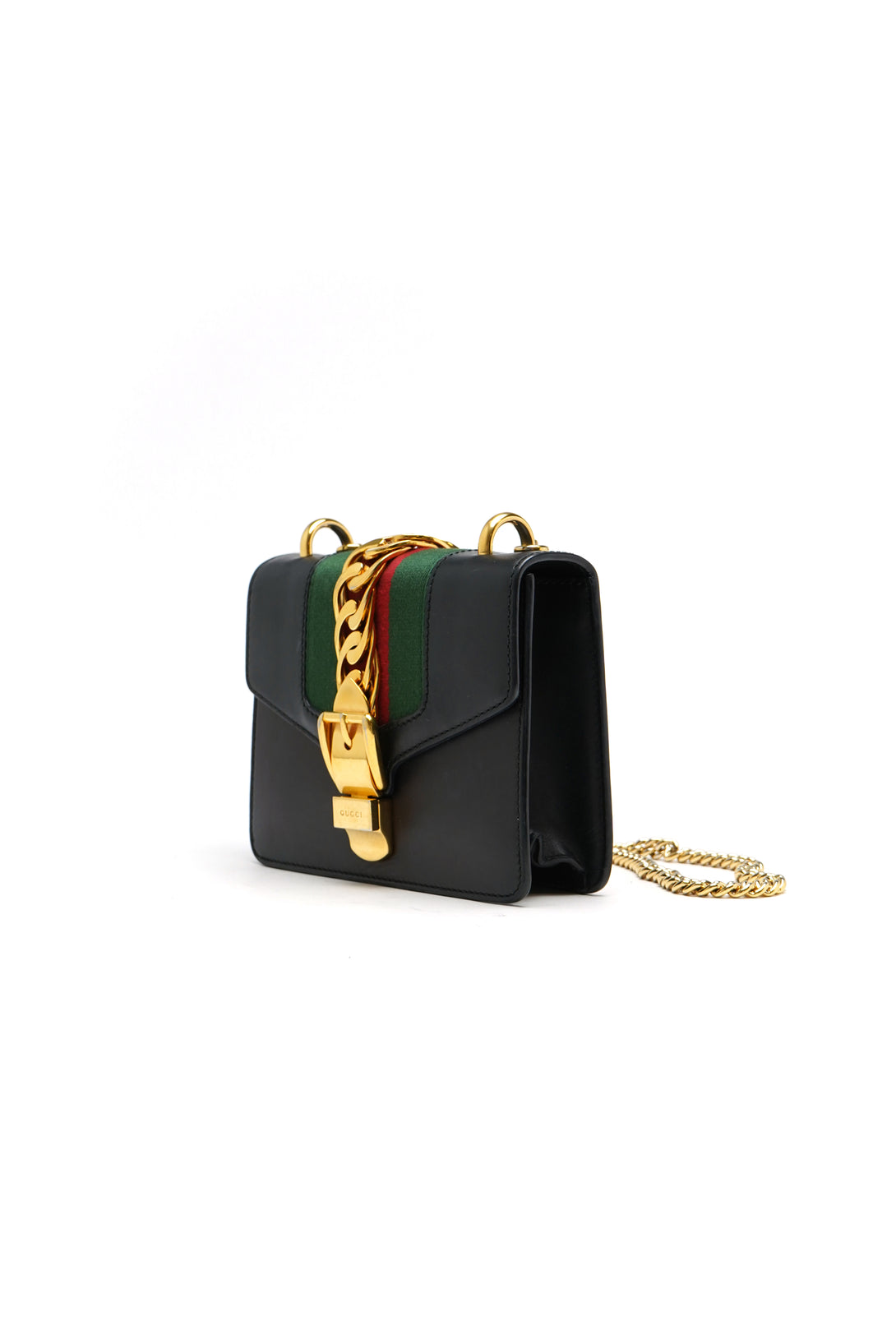 Gucci Calfskin Mini Sylvie Chain Shoulder Bag Black