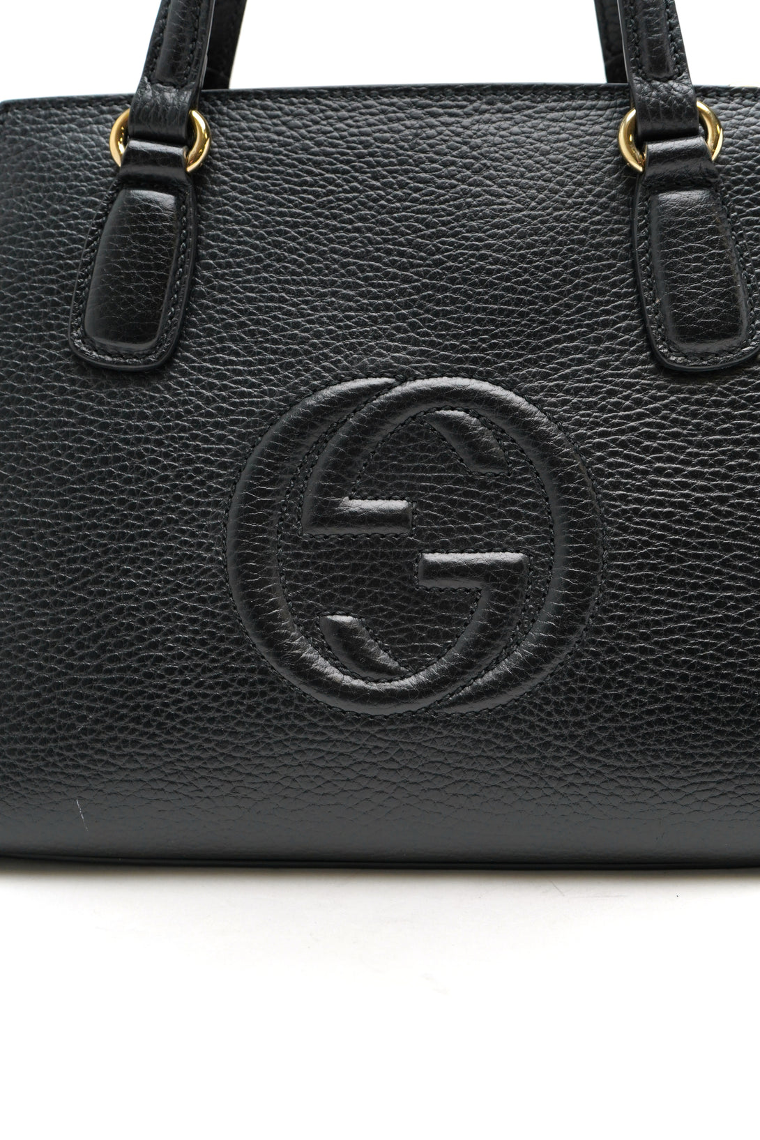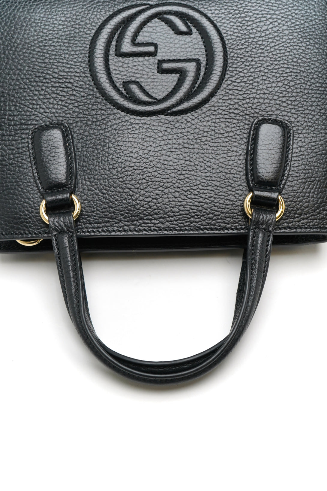 Gucci Dollar Calfskin Medium Soho Top Handle Satchel Black