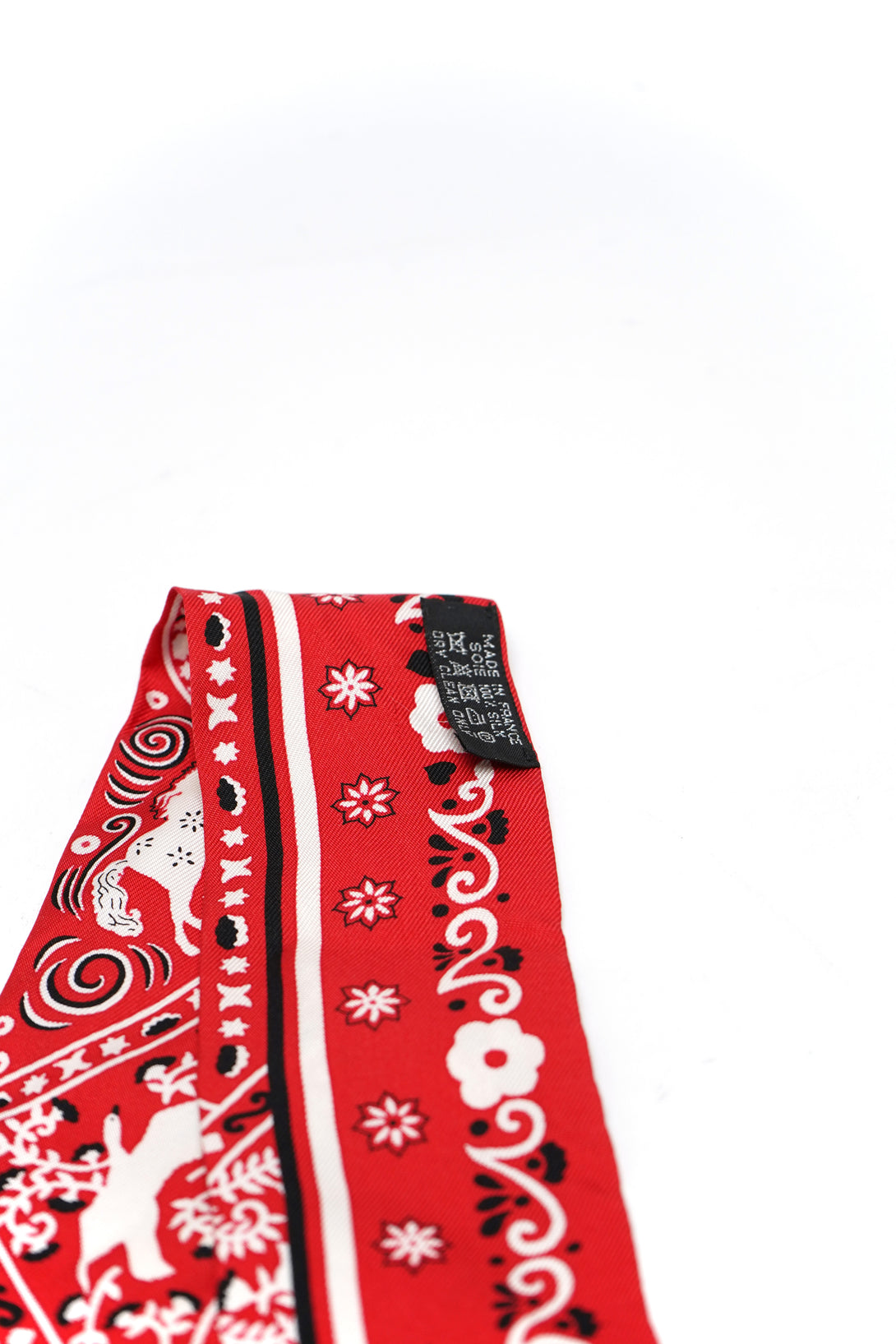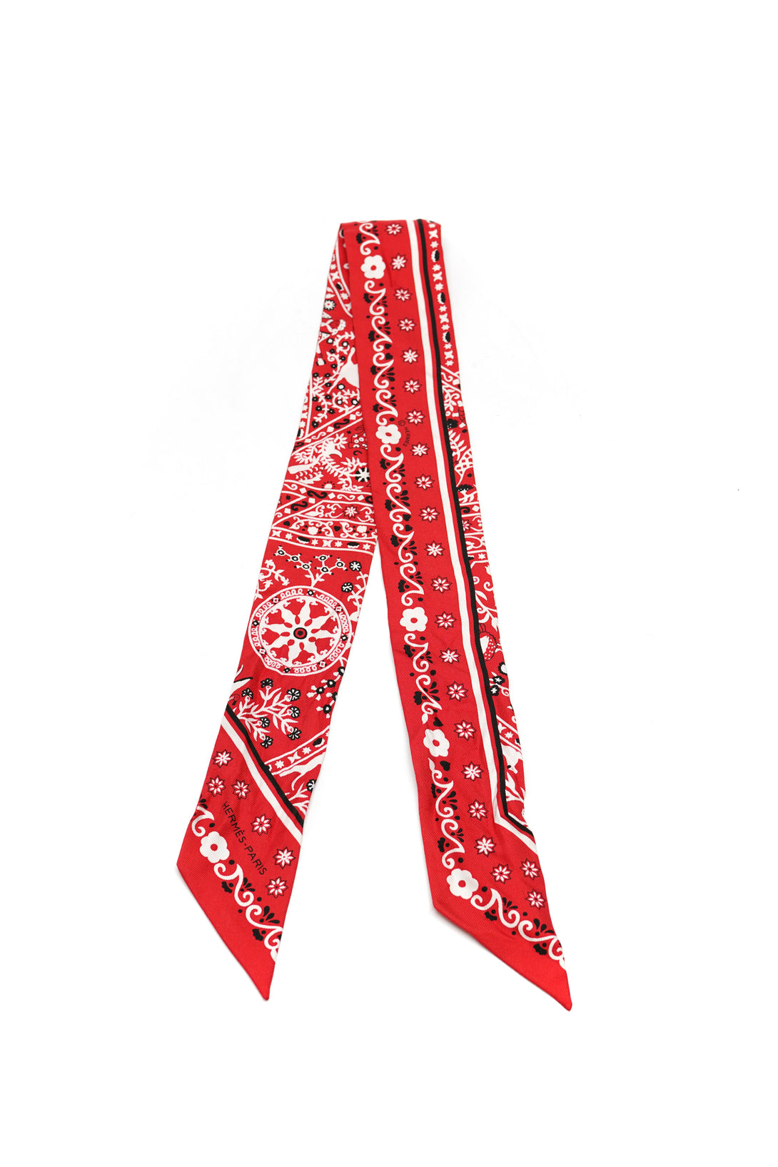Hermes Silk Peuple Du Vent Bandana Twilly Rouge Noir Blanc