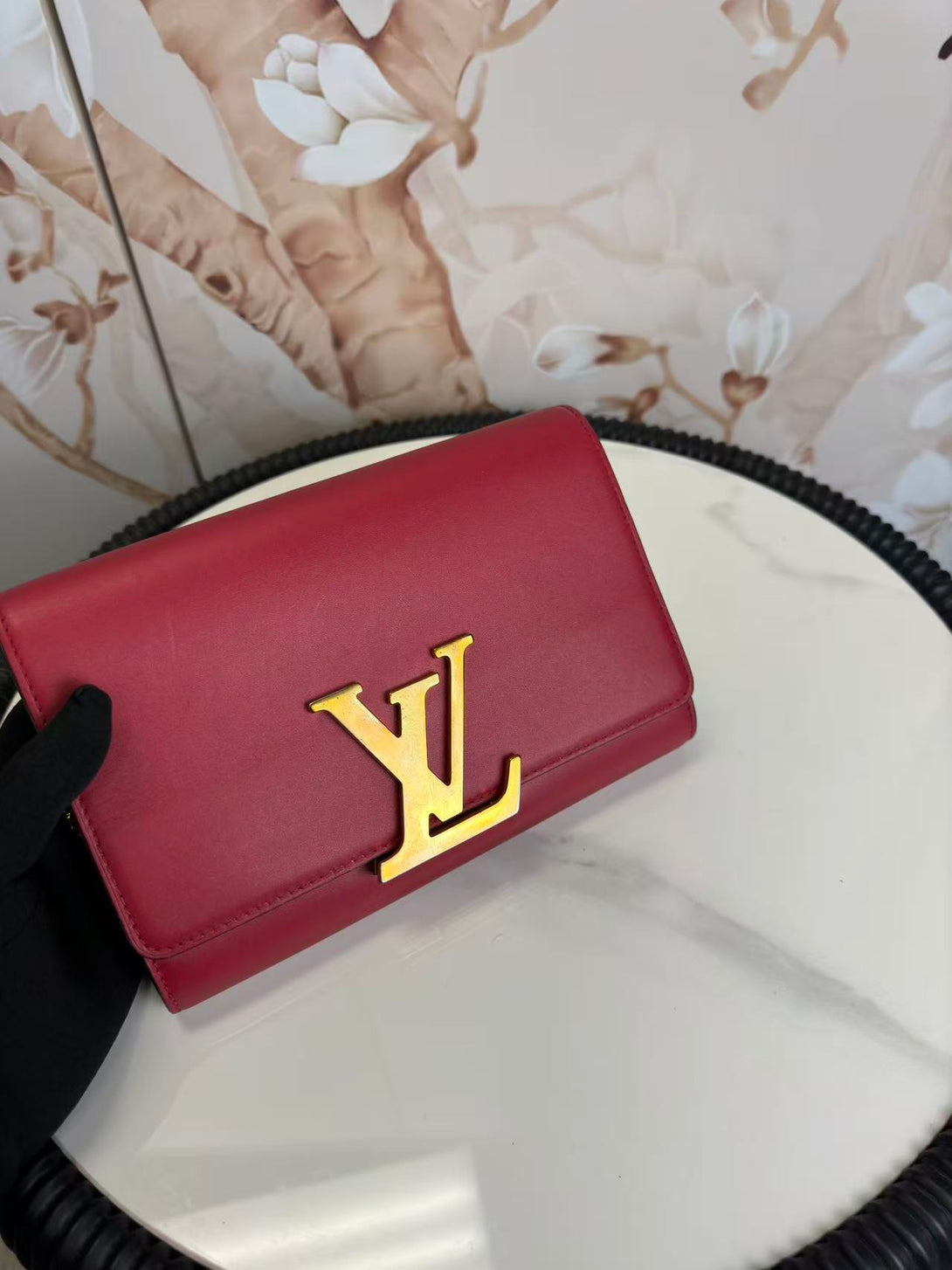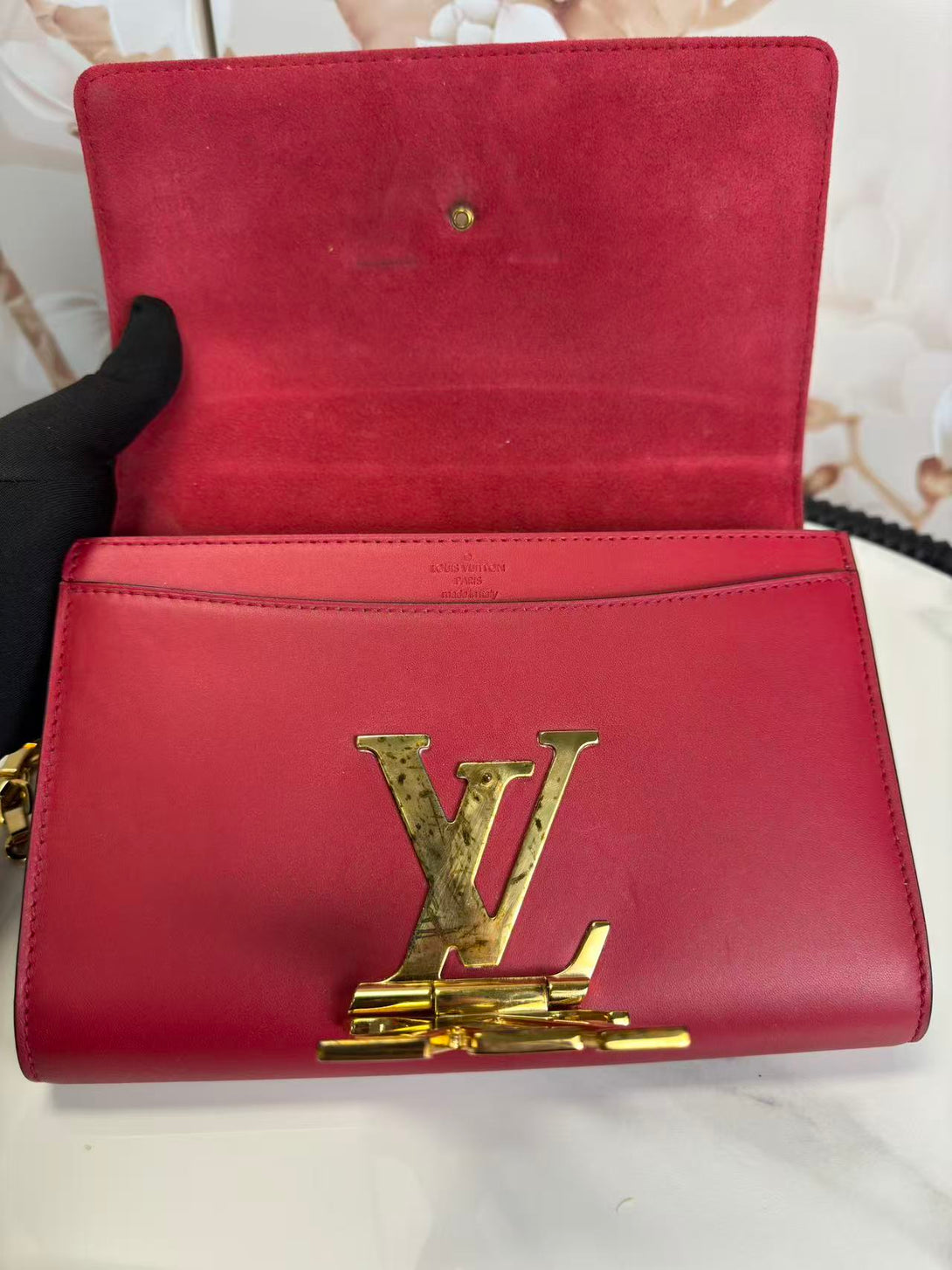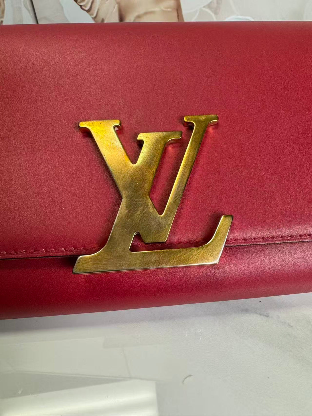 Louis Vuitton Calfskin Chain Louise MM Red