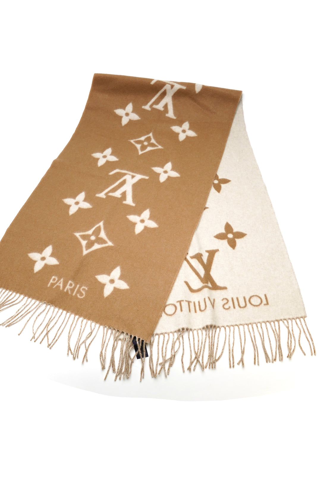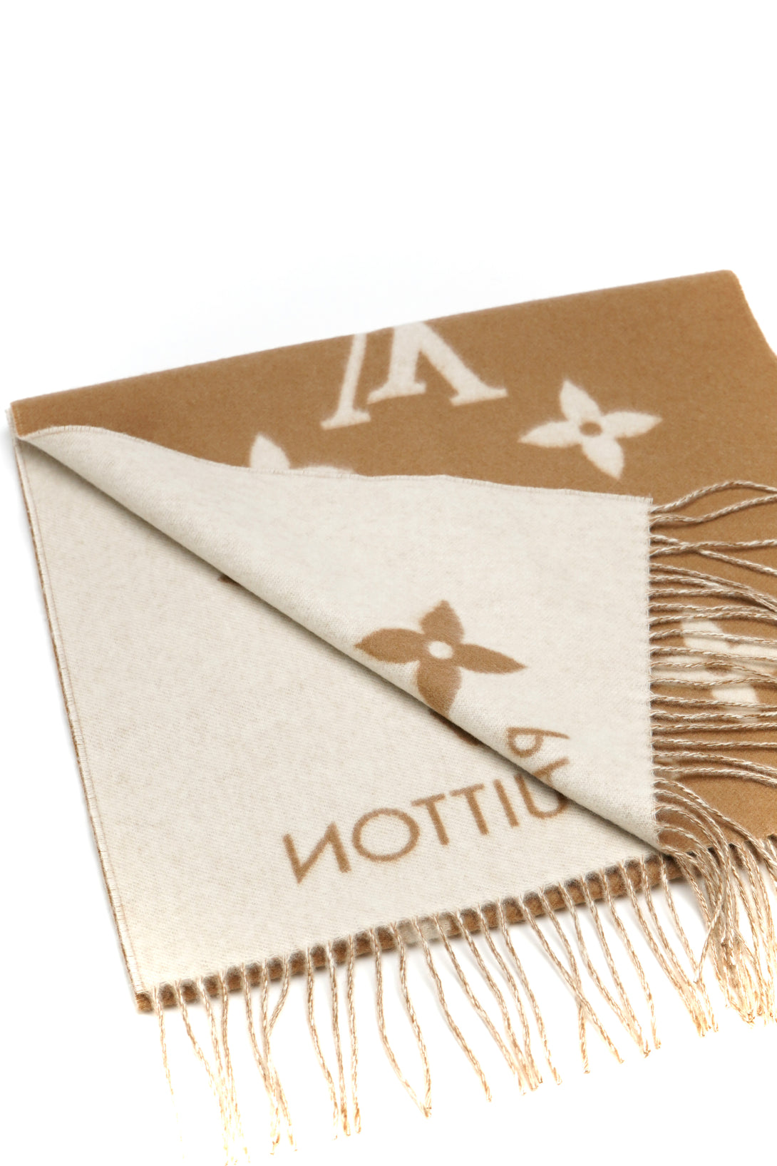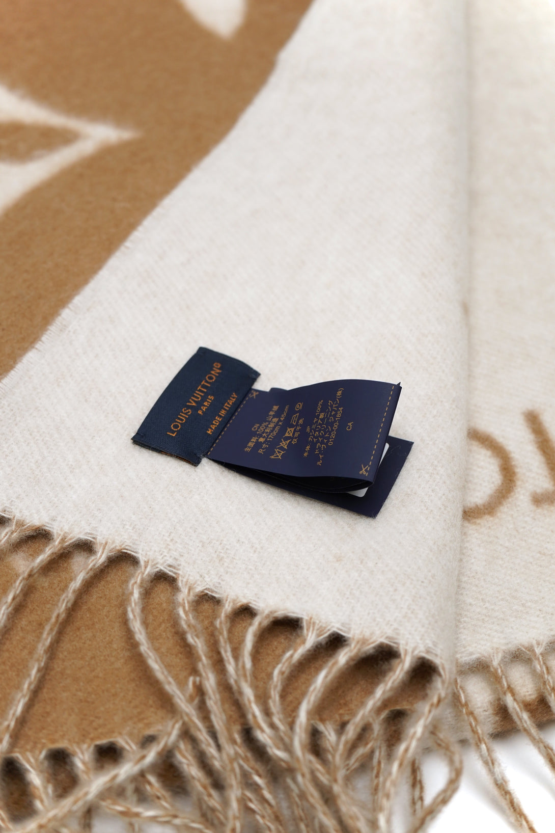 Louis Vuitton Wool Cashmere Monogram Daily LV Scarf Beige White