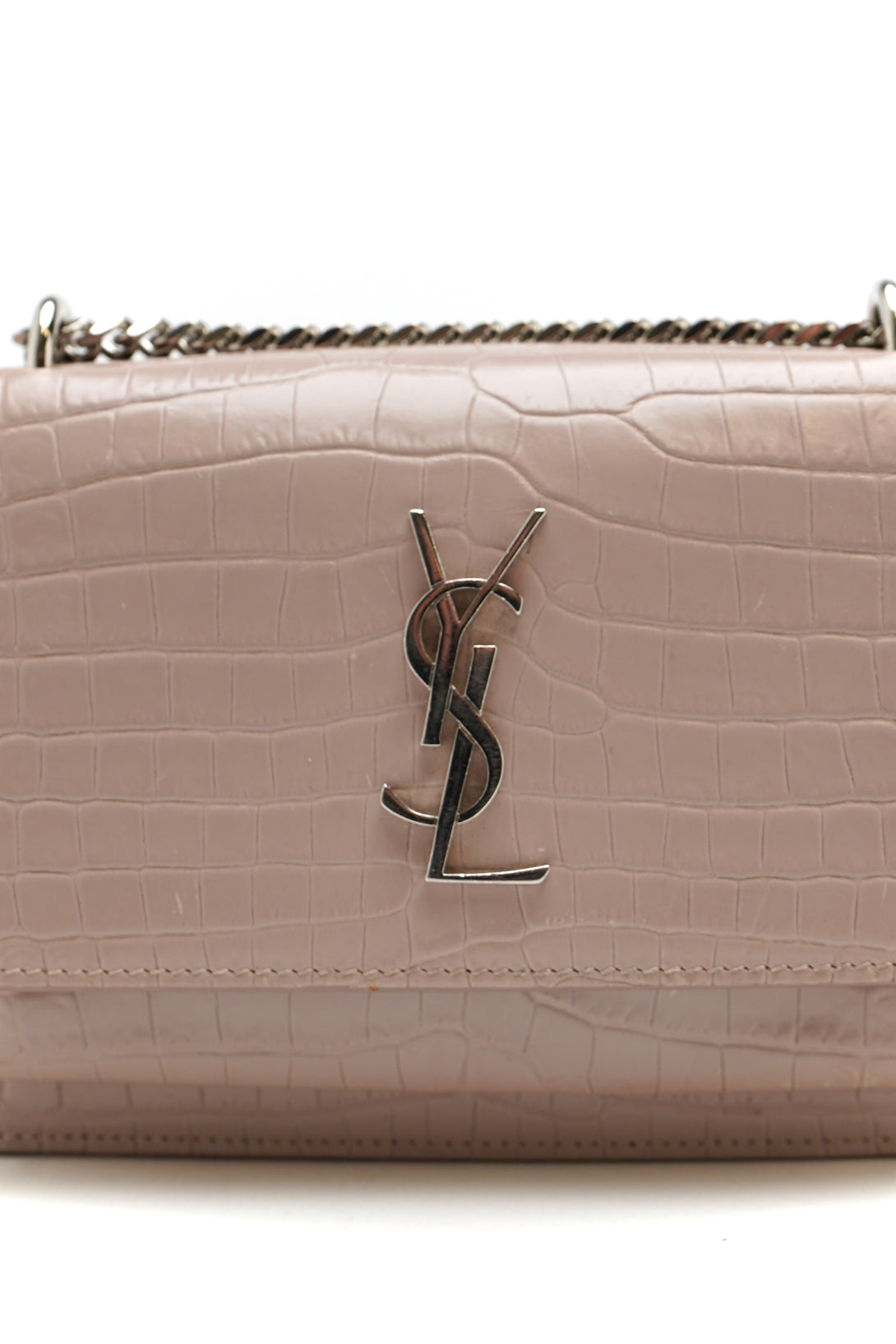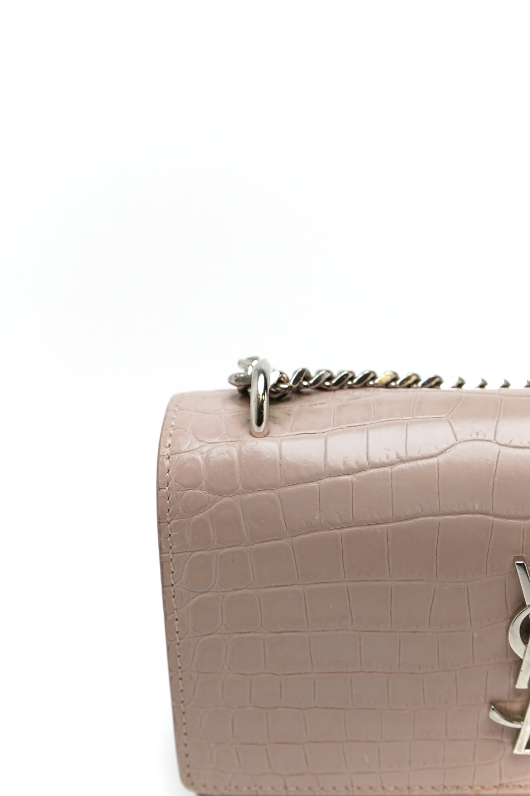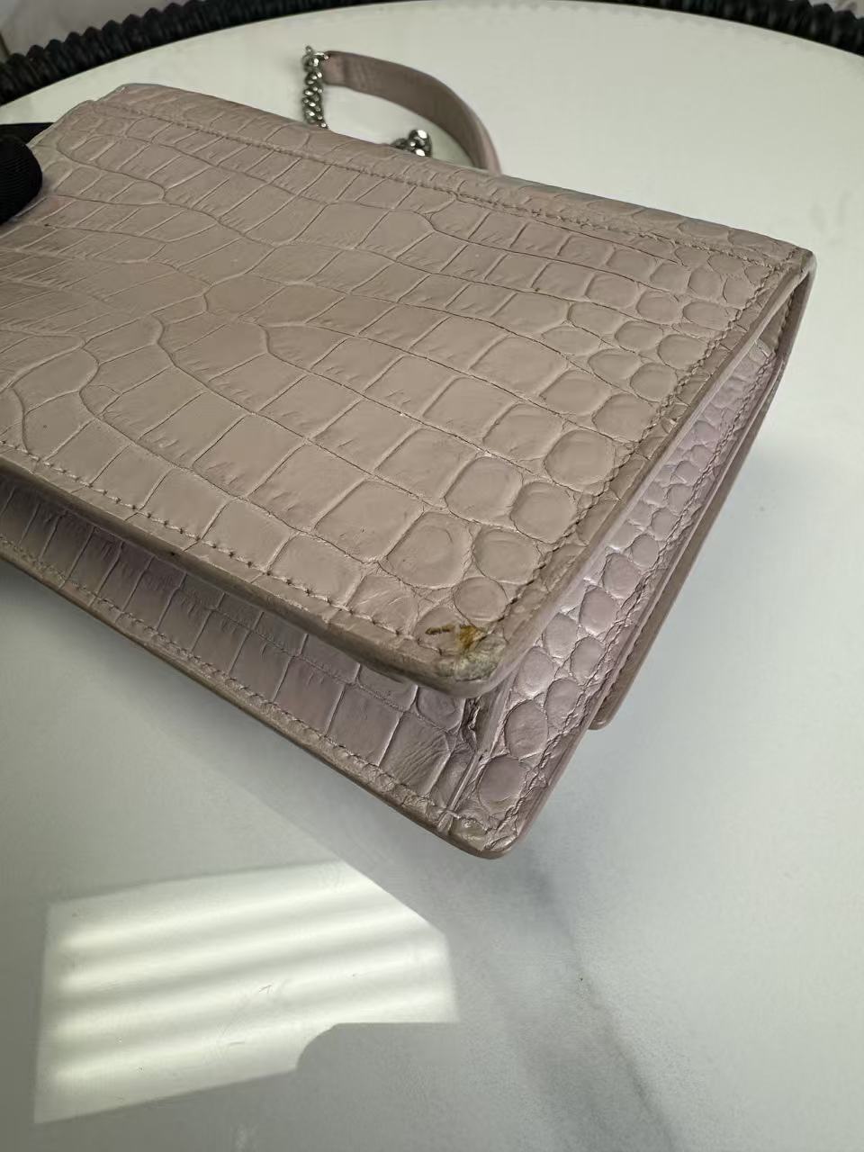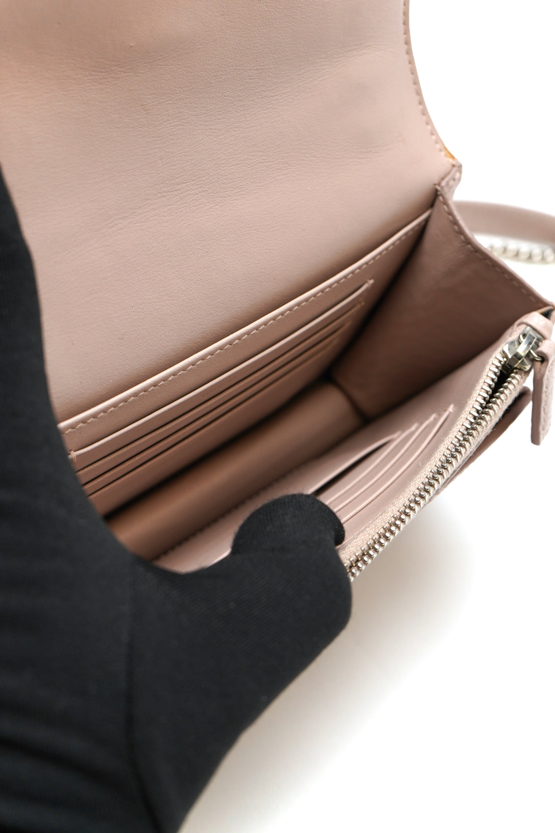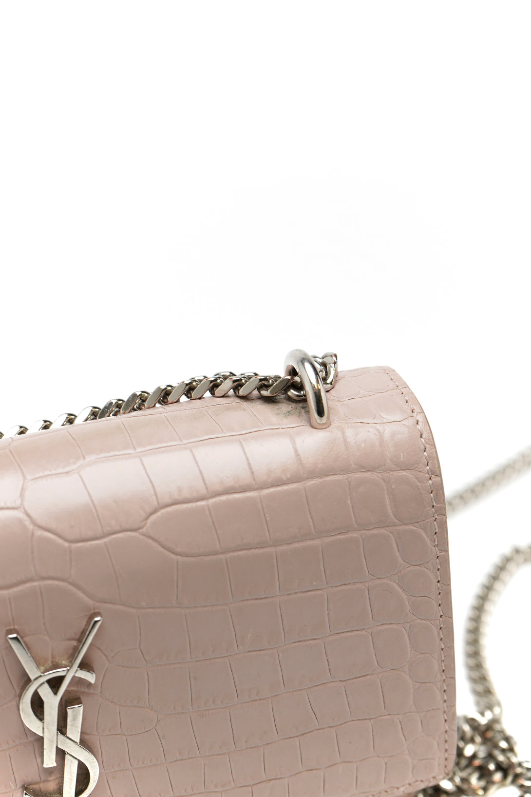 Saint Laurent Calfskin Crocodile Embossed Monogram Sunset Chain Wallet Marble Pink