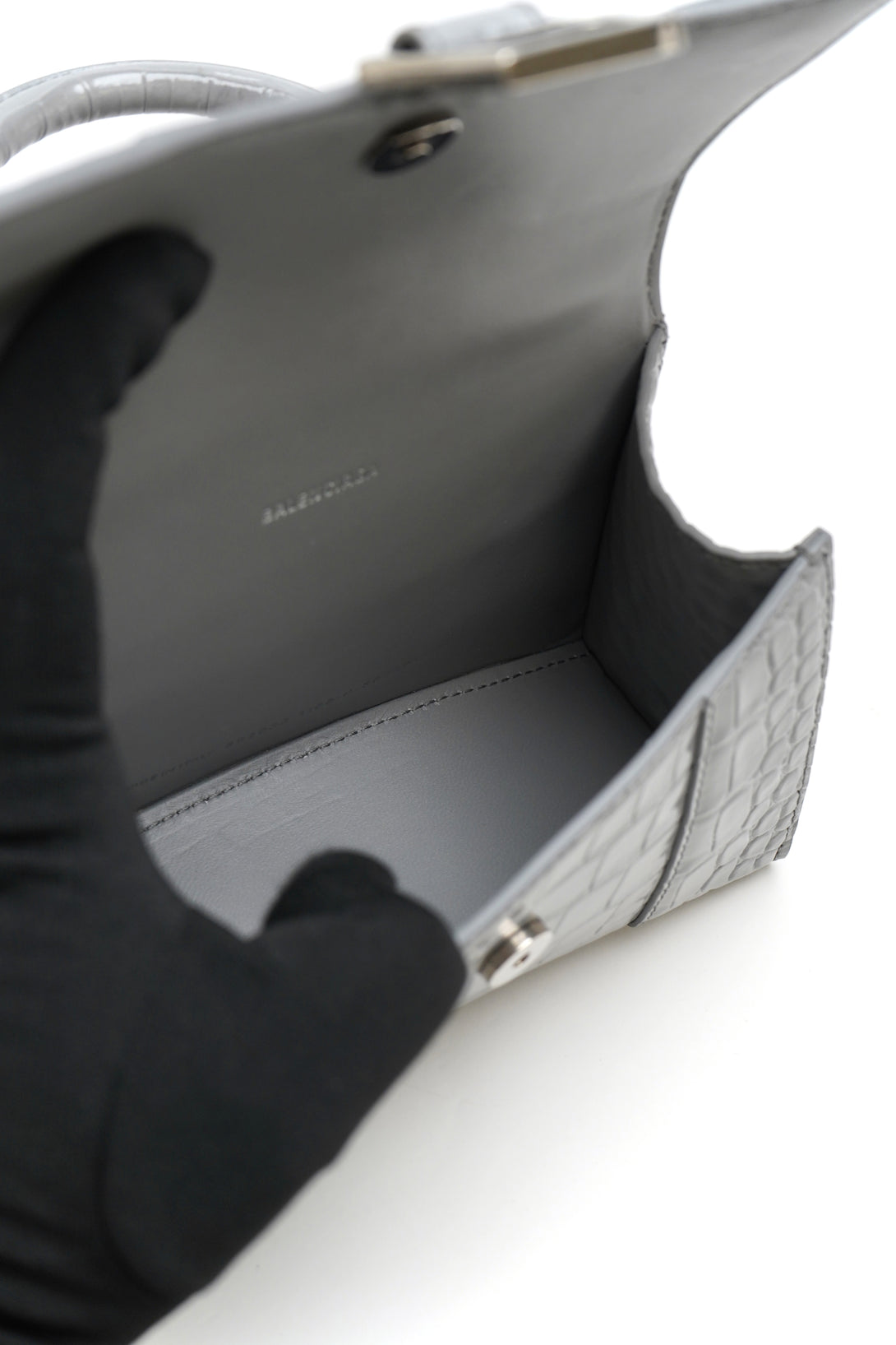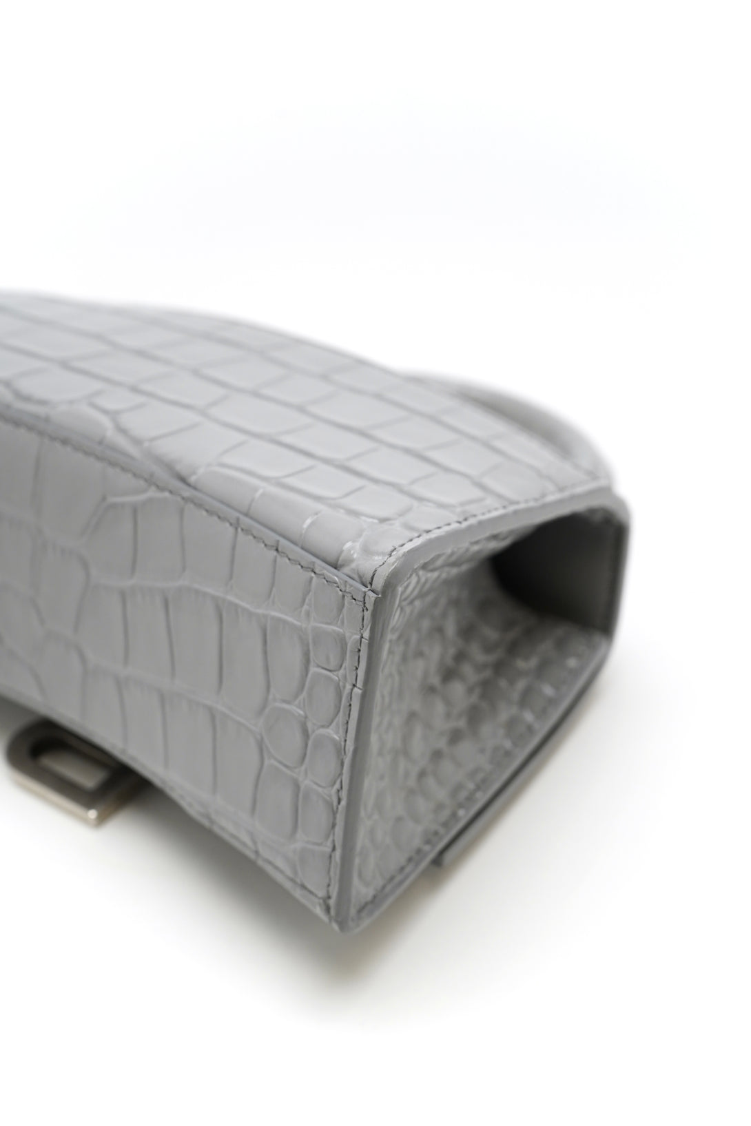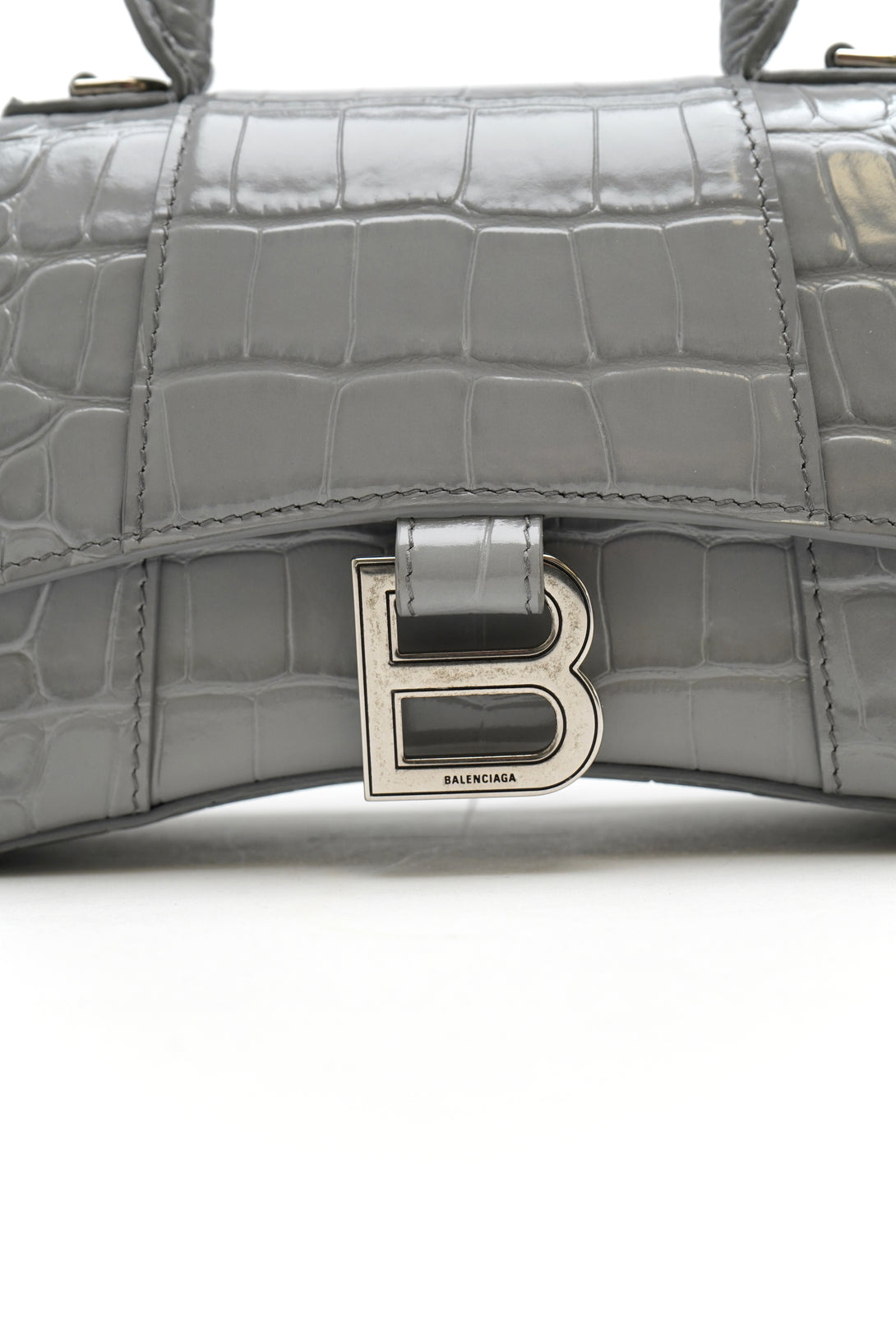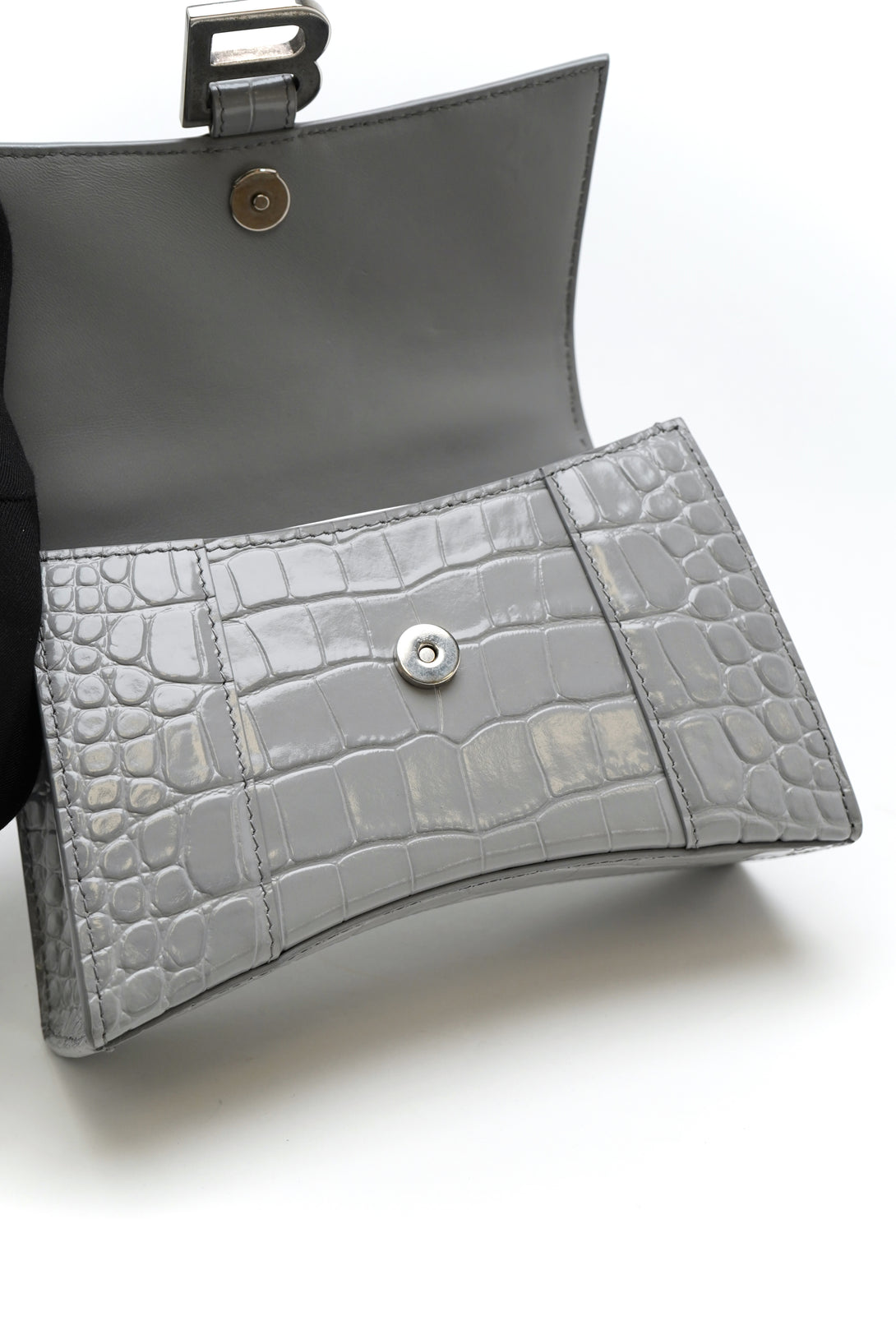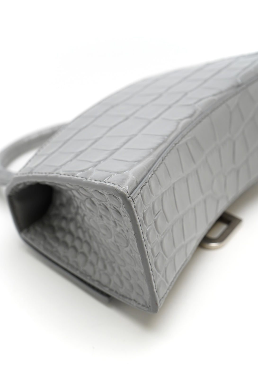 Balenciaga Shiny Calfskin Crocodile Embossed Small Hourglass Top Handle Bag Balenciaga Grey