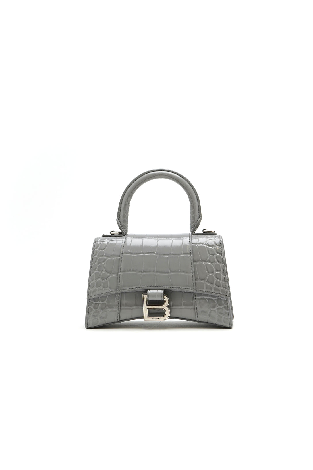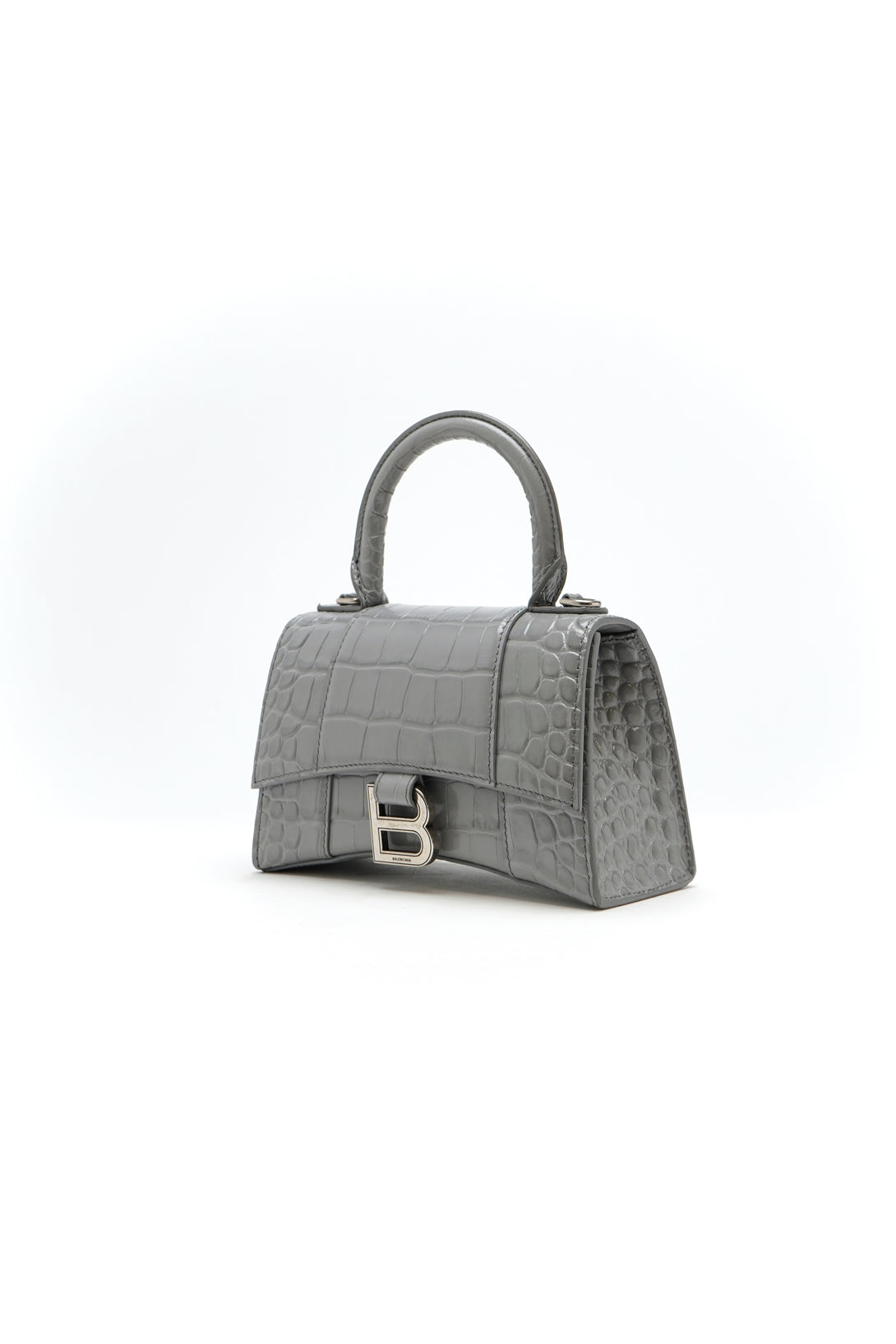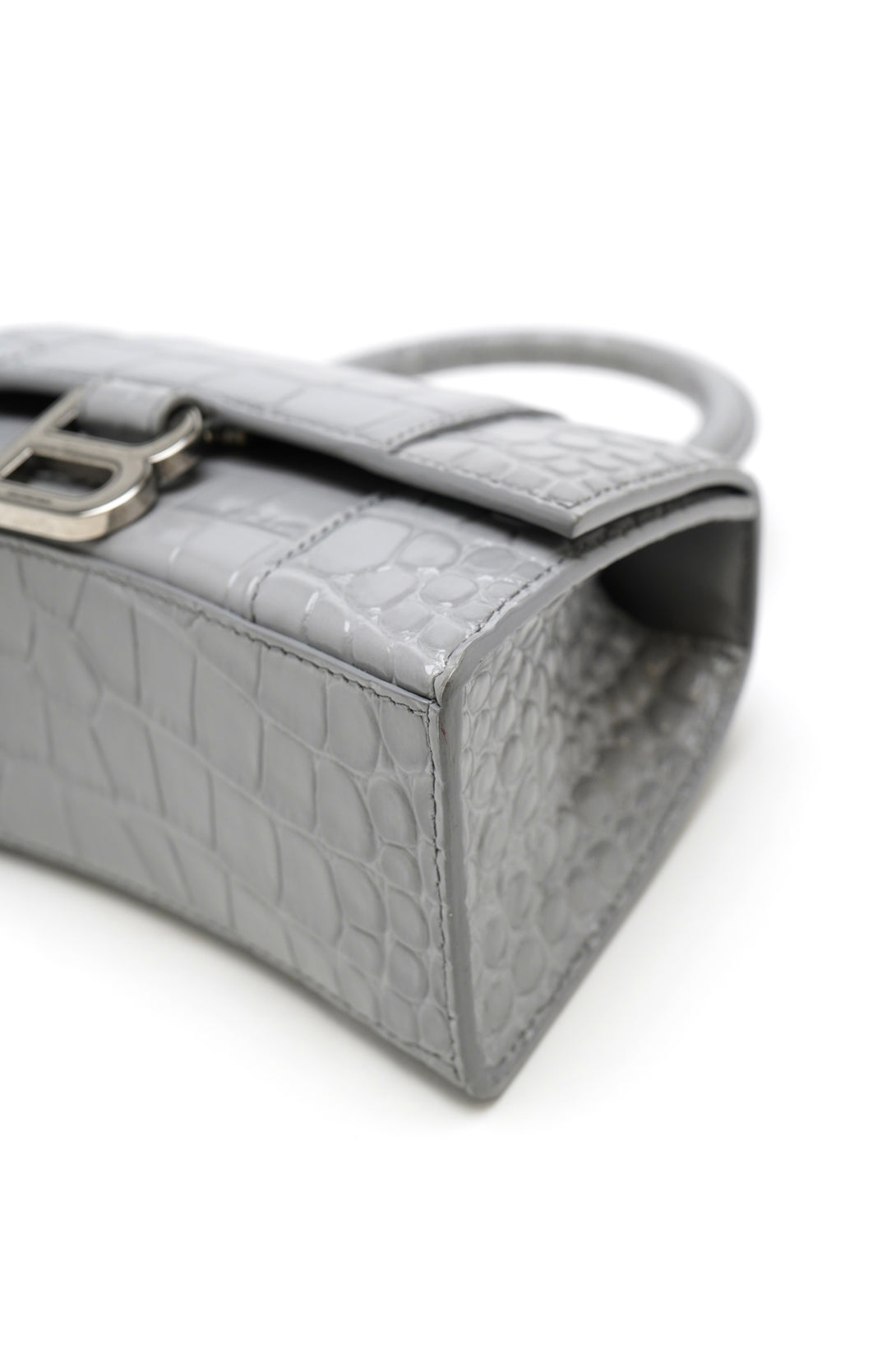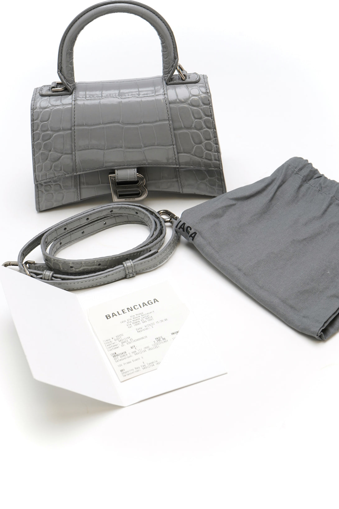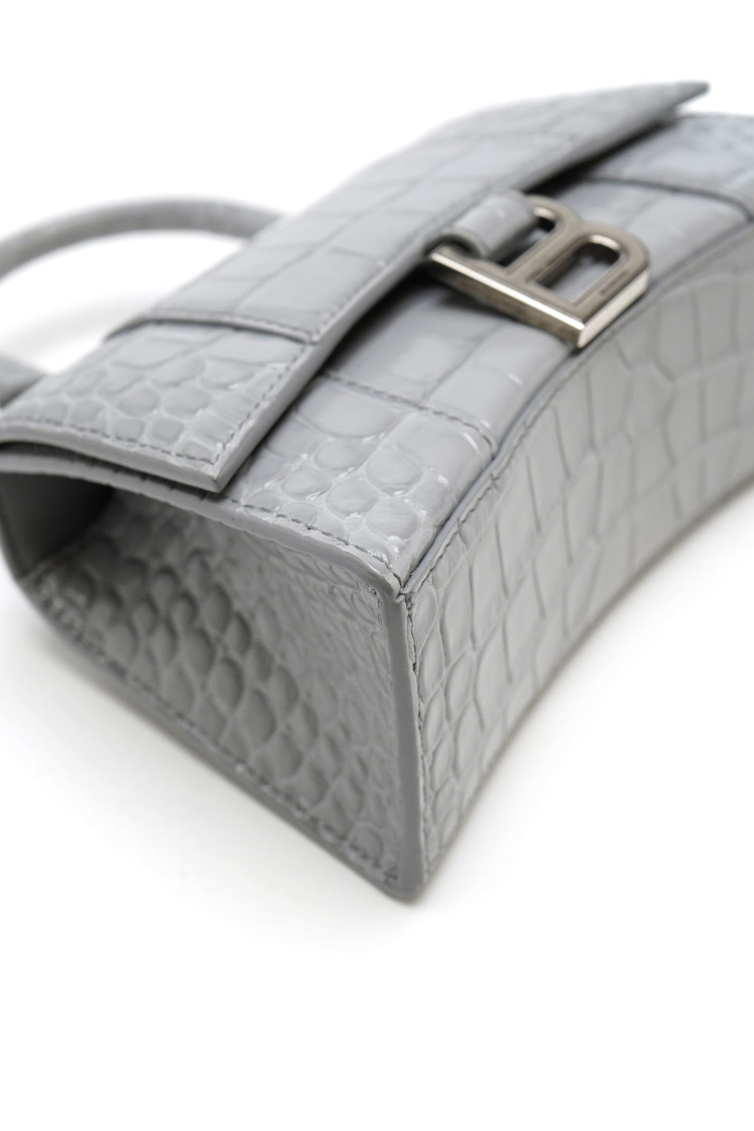 Balenciaga Shiny Calfskin Crocodile Embossed Small Hourglass Top Handle Bag Balenciaga Grey