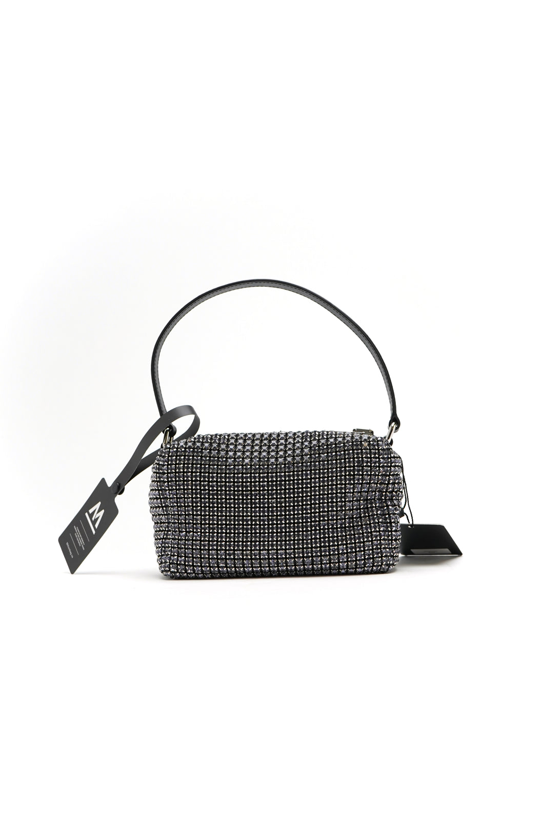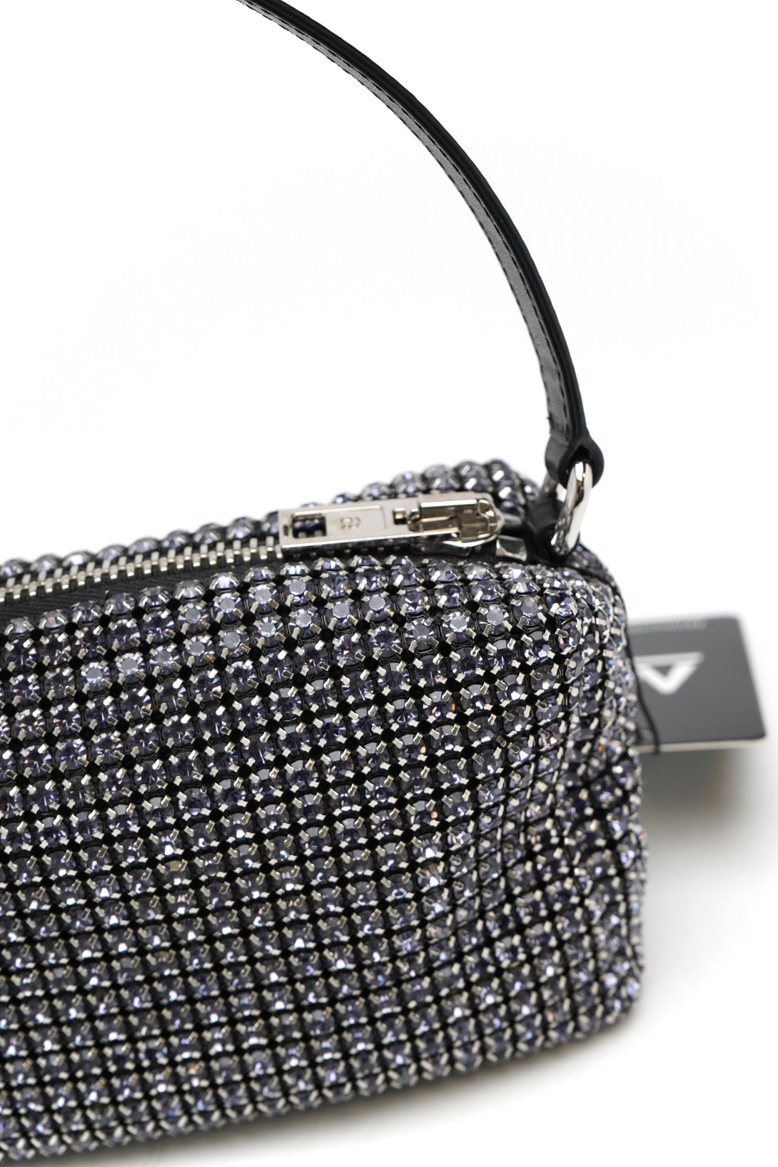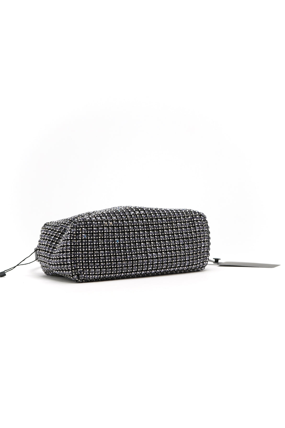 网状水晶莱茵石迷你女继承人手拿包 黑色 银色