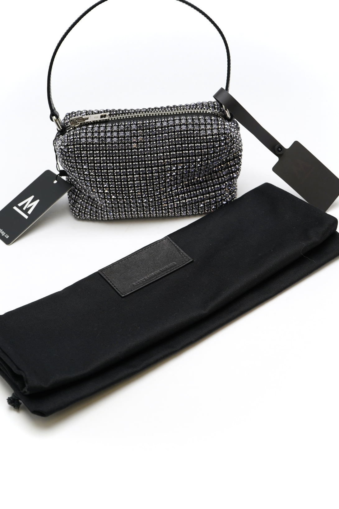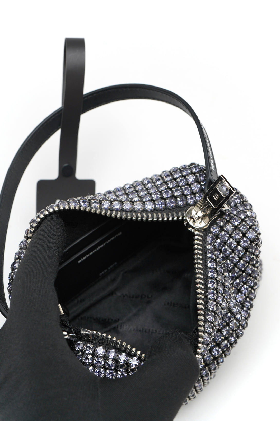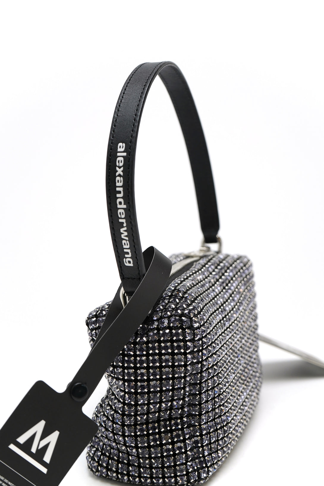 网状水晶莱茵石迷你女继承人手拿包 黑色 银色